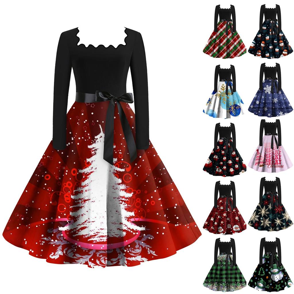 Женские повседневные модные платья с длинными рукавами и рождественским принтом с квадратным вырезом в винтажном стиле — купить товар онлайн с бесплатной доставкой по всему миру!