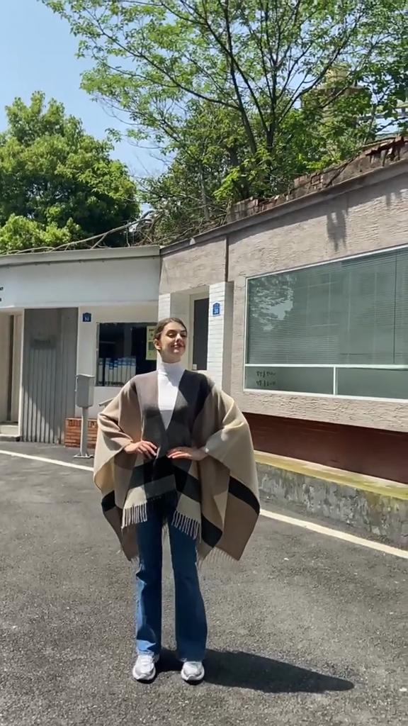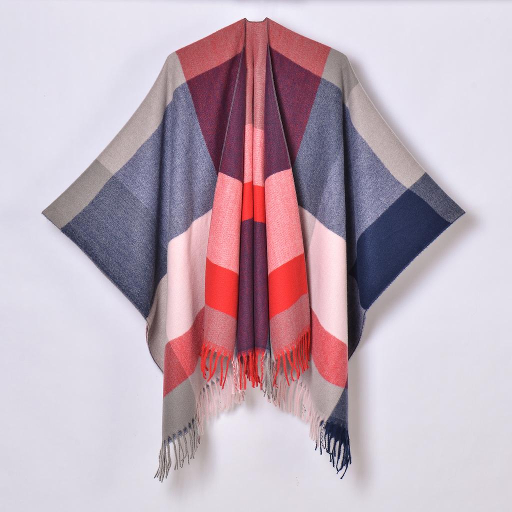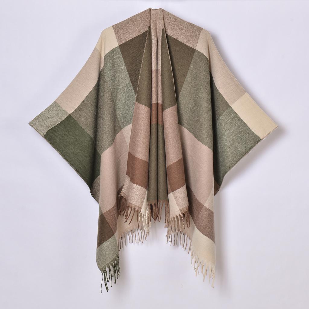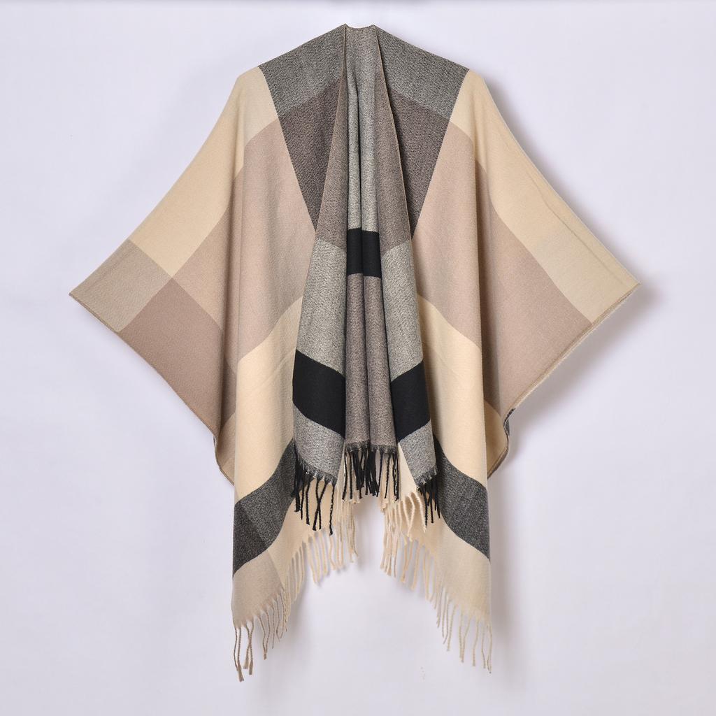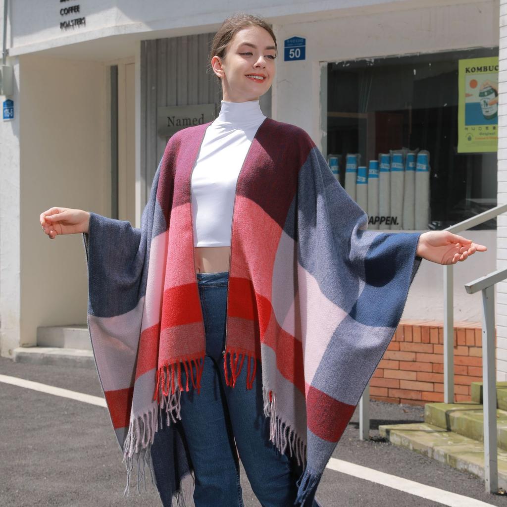 Европейский и американский стиль Женская мода классическая клетчатая шаль осень-зима теплая вязаная накидка жаккардовая бахрома разрезной кардиган