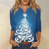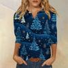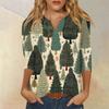 Женская рубашка с рукавом семь дюймов, напечатанная в стиле ретро, повседневная, свободная, с V-образным вырезом, рождественская