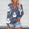 Женская повседневная мода сексуальный комфорт рождественские принты V-образный вырез пуговицы длинный рукав футболка топ