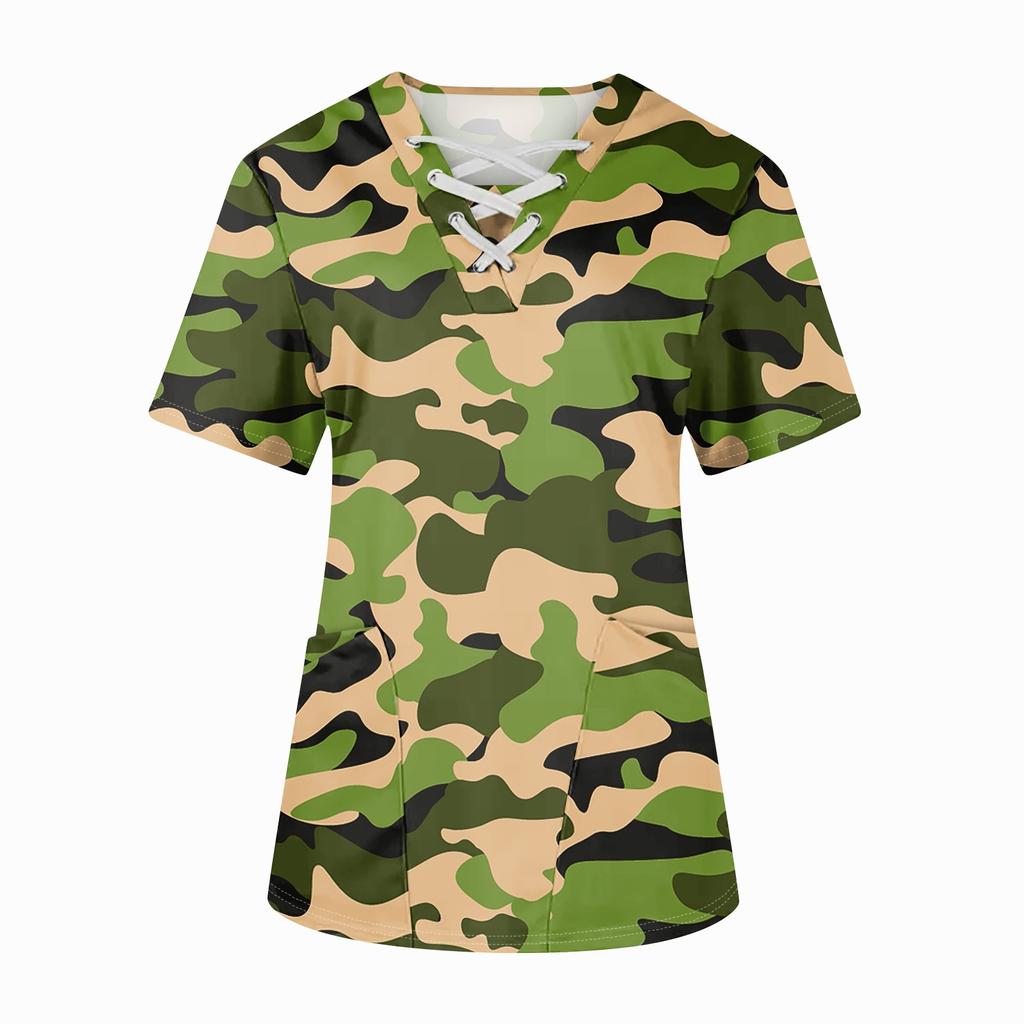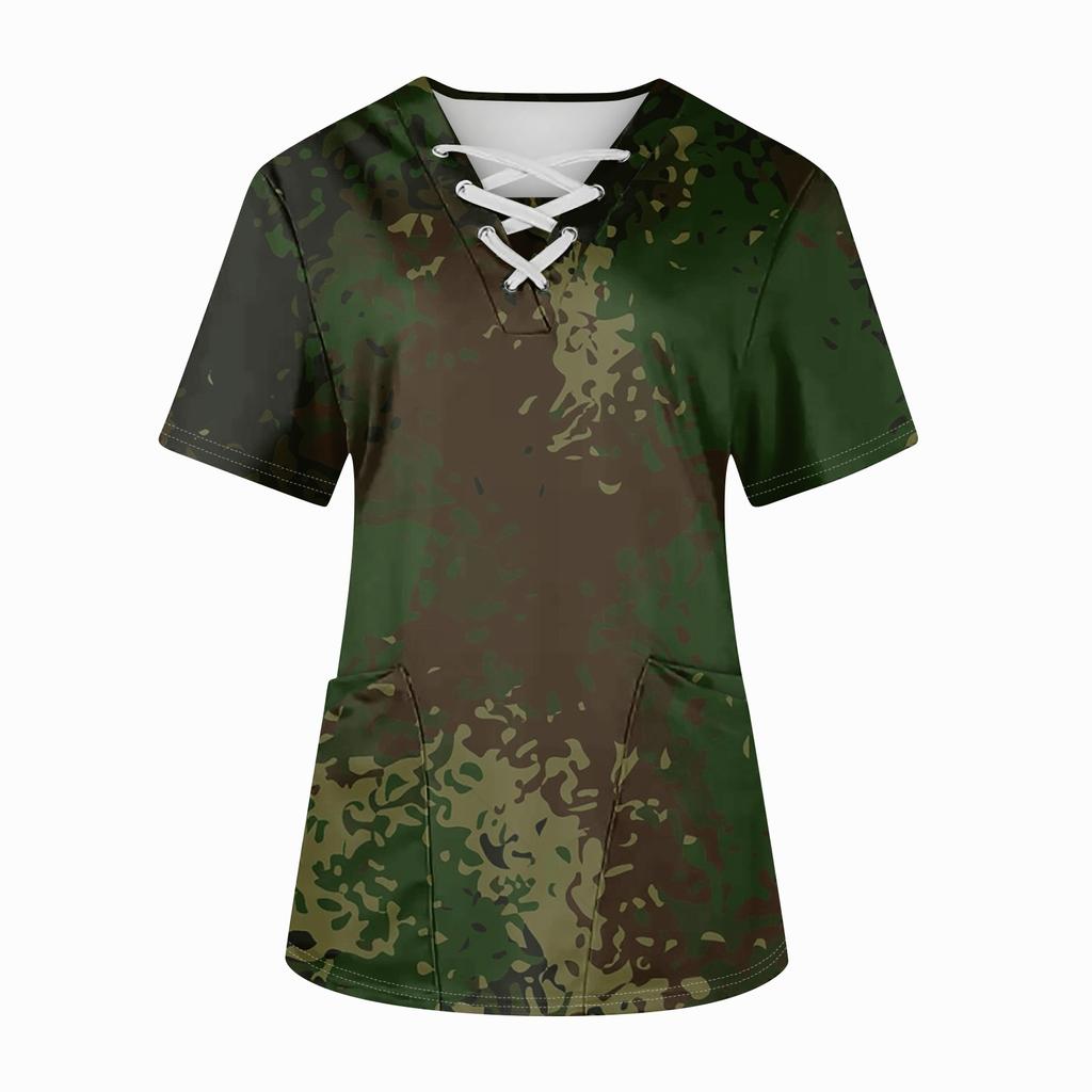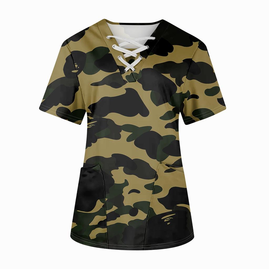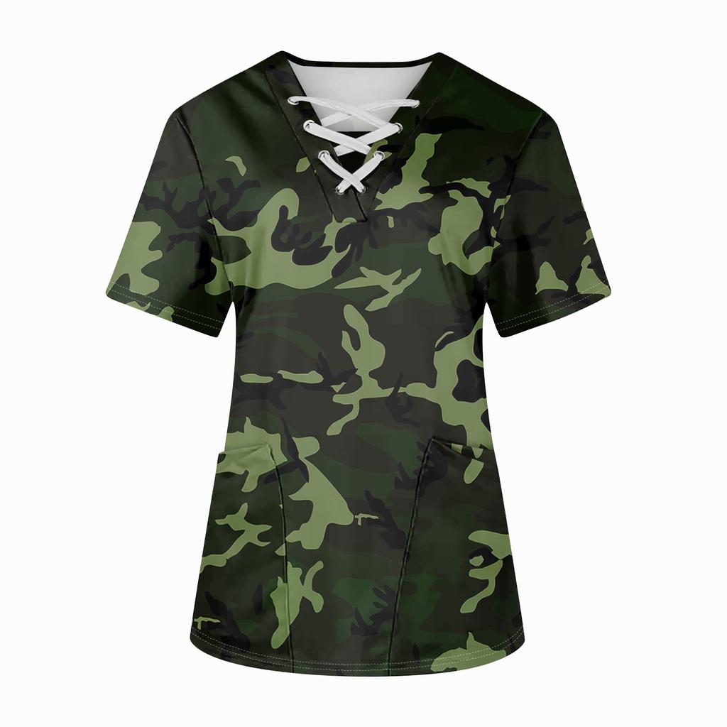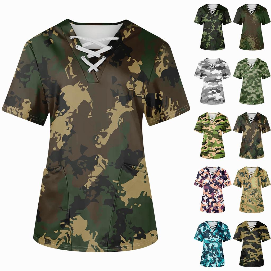 Плюс размерСкраб с принтом Рабочая форма Топы для женщин Крест V-образным вырезом Хэллоуин Принт с короткими рукавами Забавные футболки Спецодежда Футболка с карманами