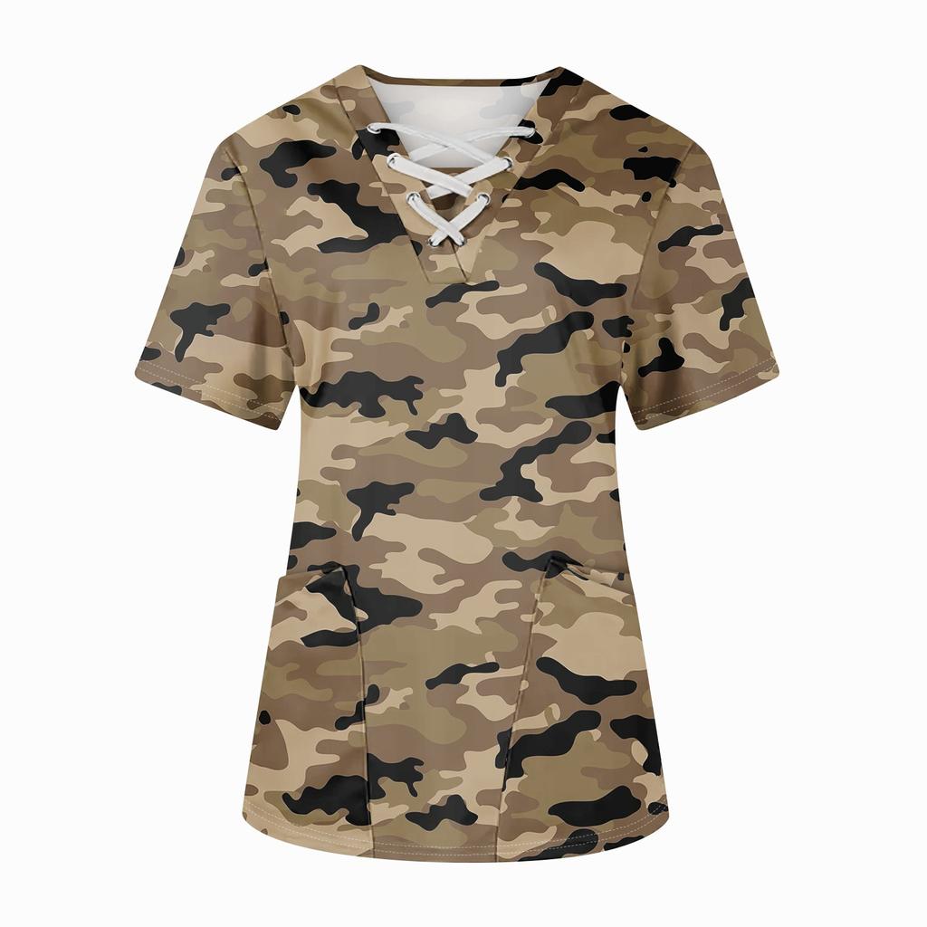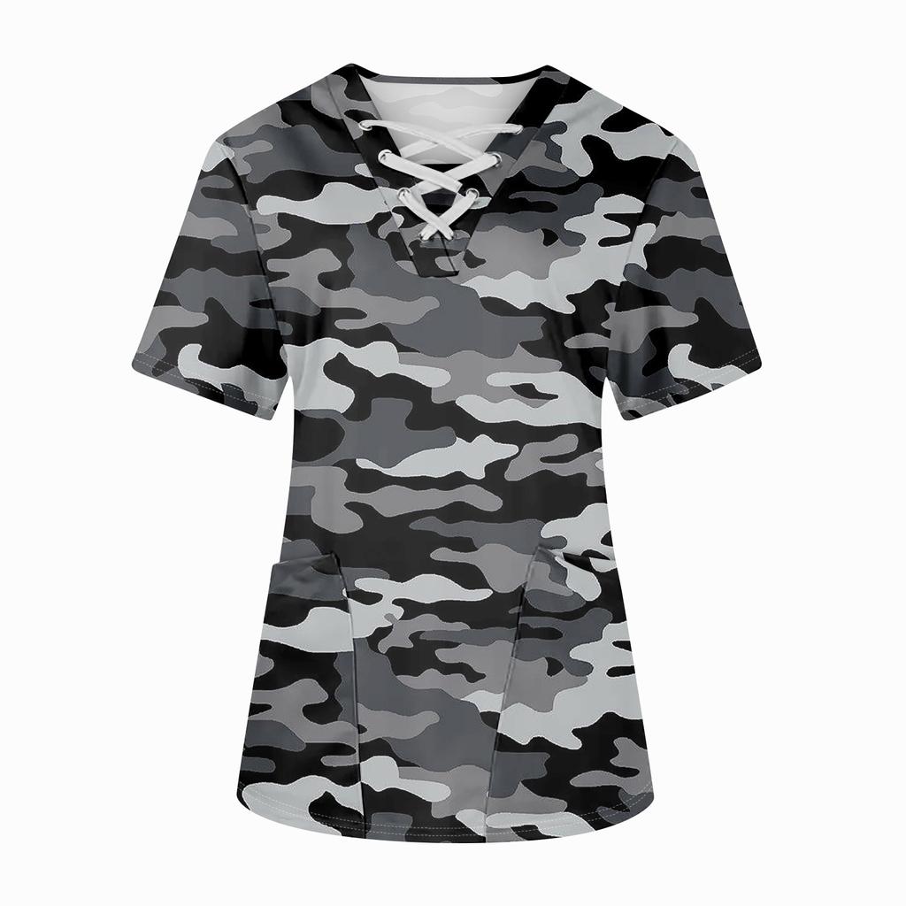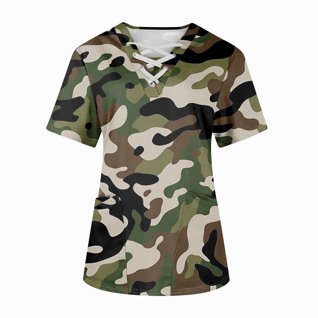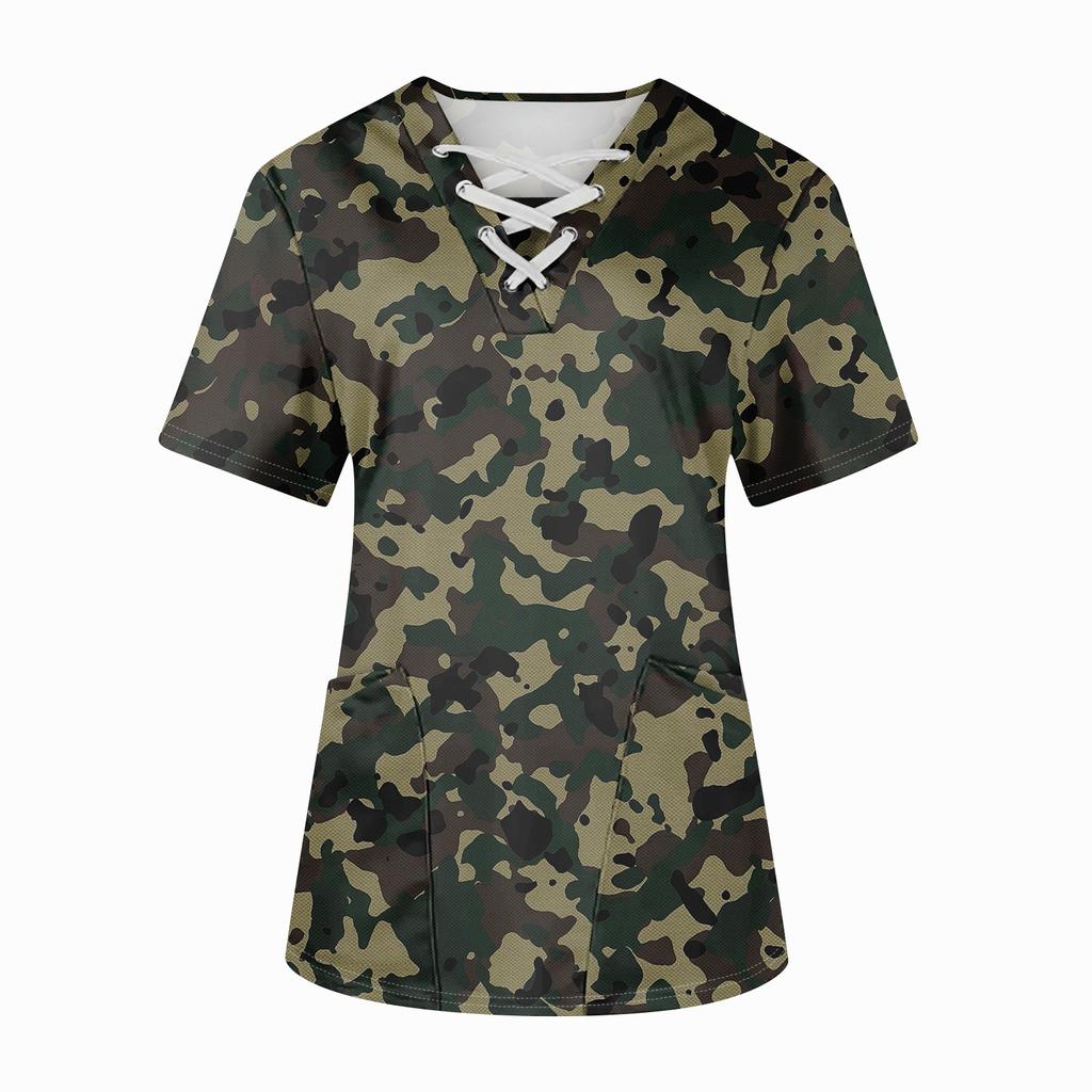 Плюс размерСкраб с принтом Рабочая форма Топы для женщин Крест V-образным вырезом Хэллоуин Принт с короткими рукавами Забавные футболки Спецодежда Футболка с карманами