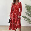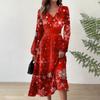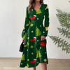 Женское осеннее и зимнее повседневное модное длинное платье с v-образным вырезом и длинным рукавом с рождественским принтом