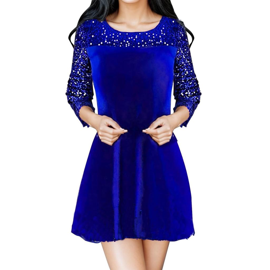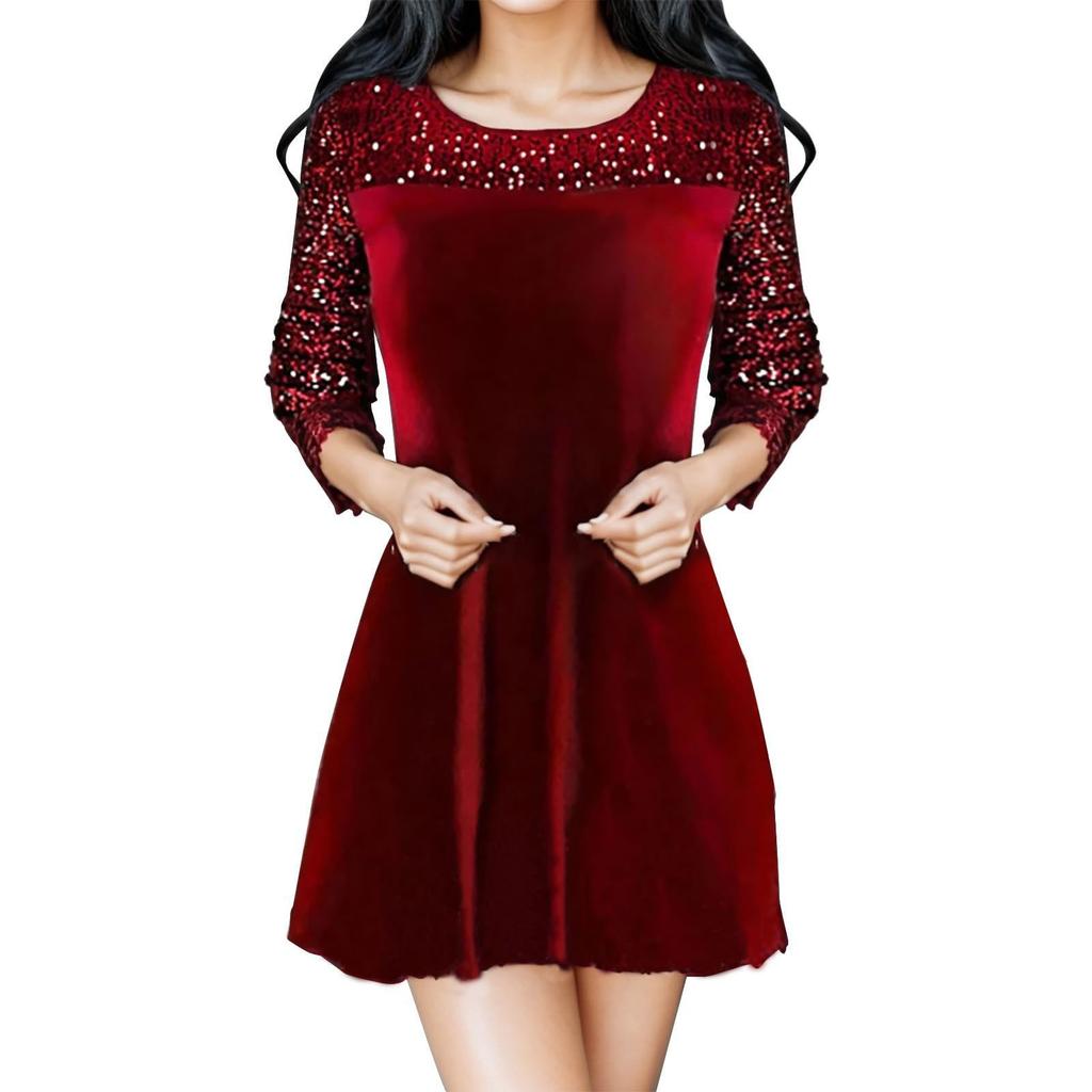 Женское блестящее платье с круглым вырезом и рукавом три четверти, платье с пайетками, повседневное элегантное платье, осеннее вечернее платье