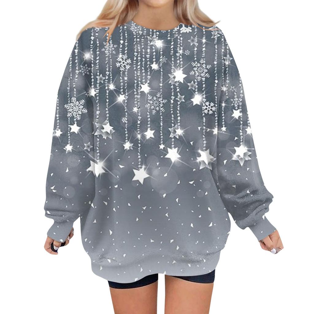 Женский свитер с круглым вырезом и длинными рукавами с рождественским принтом, худи