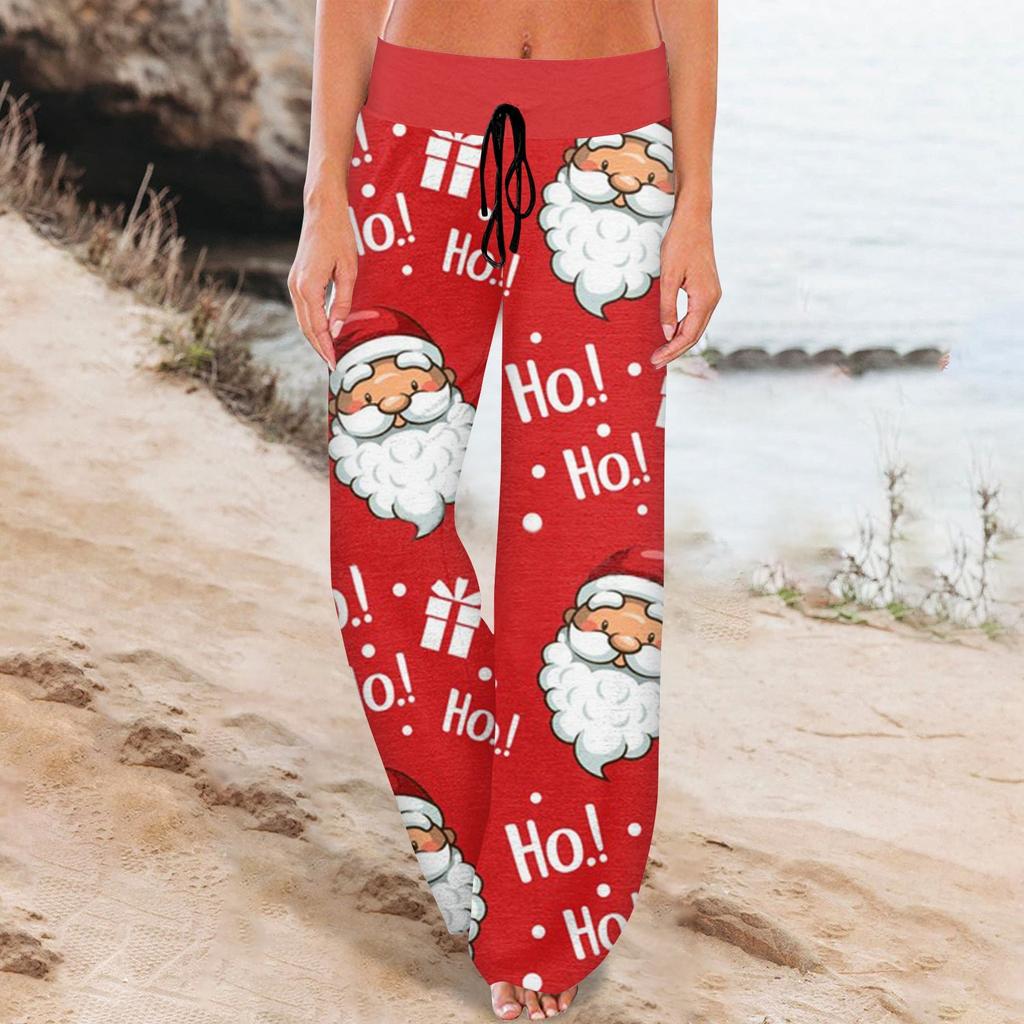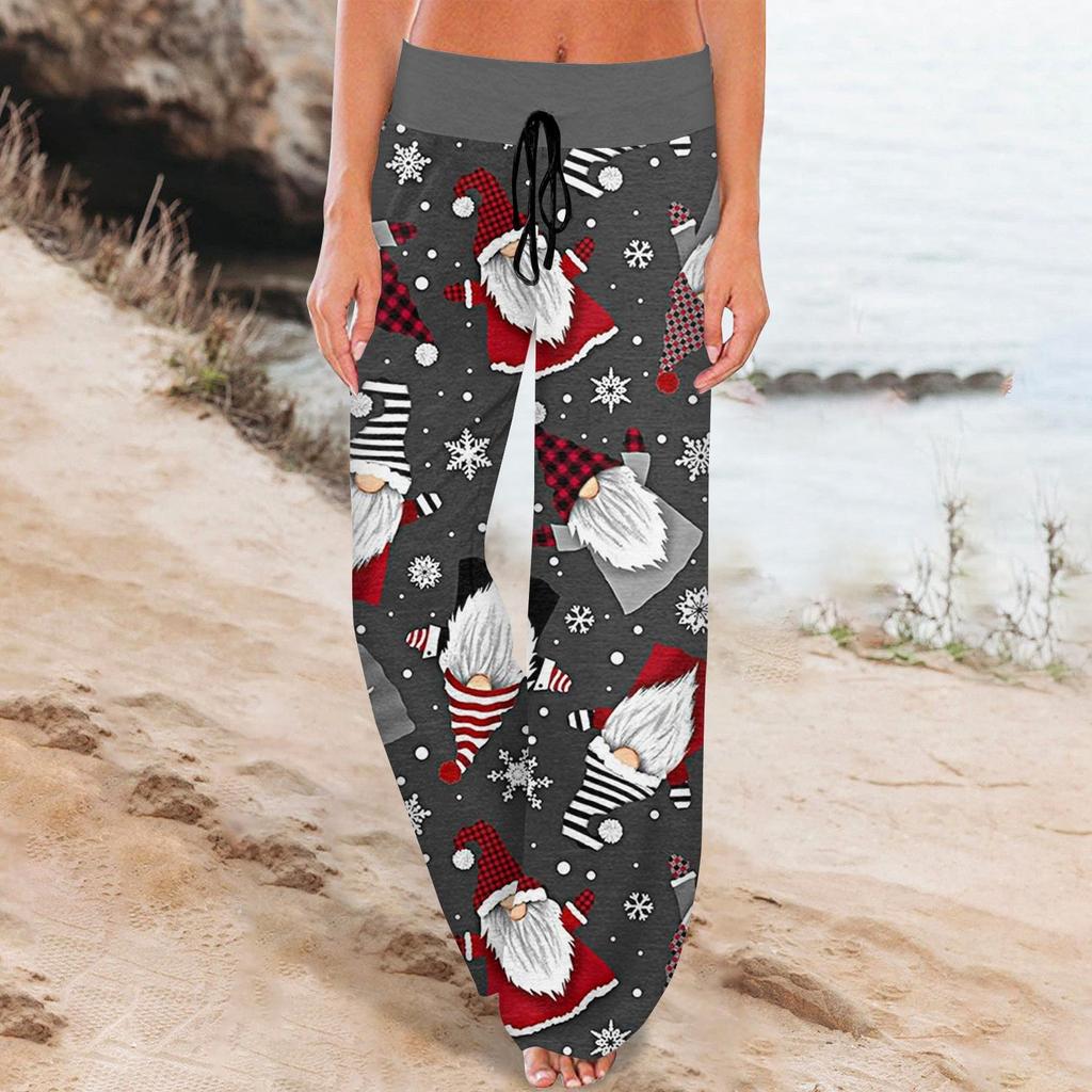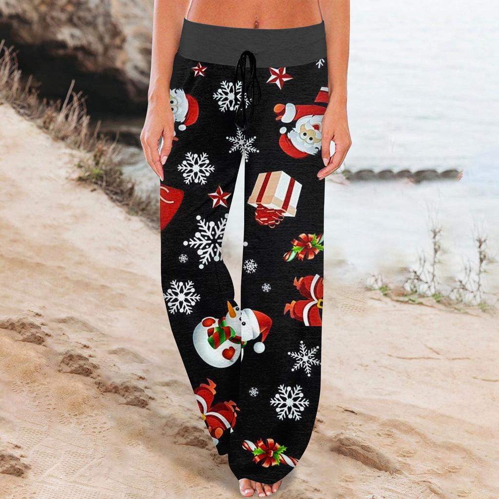 Женские удобные пижамные штаны с карманами и рождественским принтом, широкие брюки на завязках