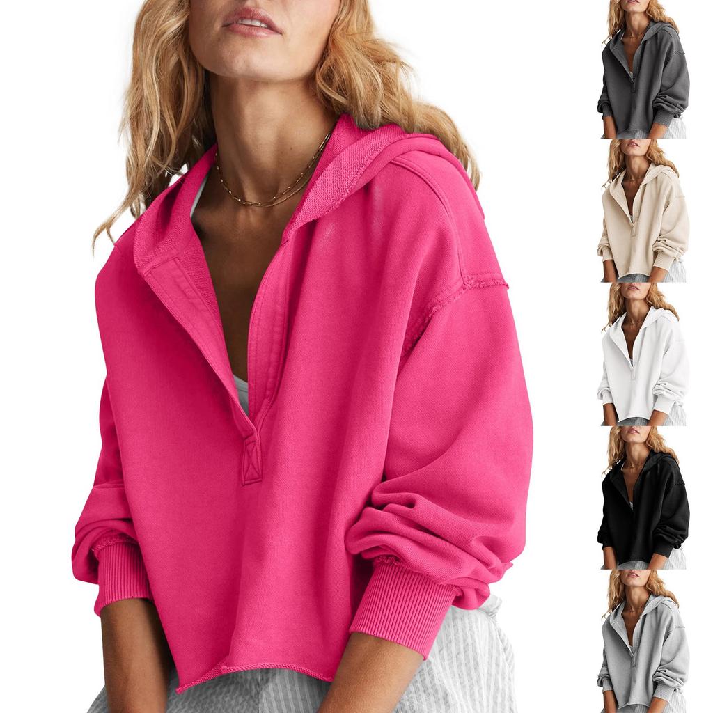 Женская модная однотонная свободная кофта с V-образным вырезом и длинными рукавами, короткая толстовка с капюшоном — купить товар онлайн с бесплатной доставкой по всему миру!