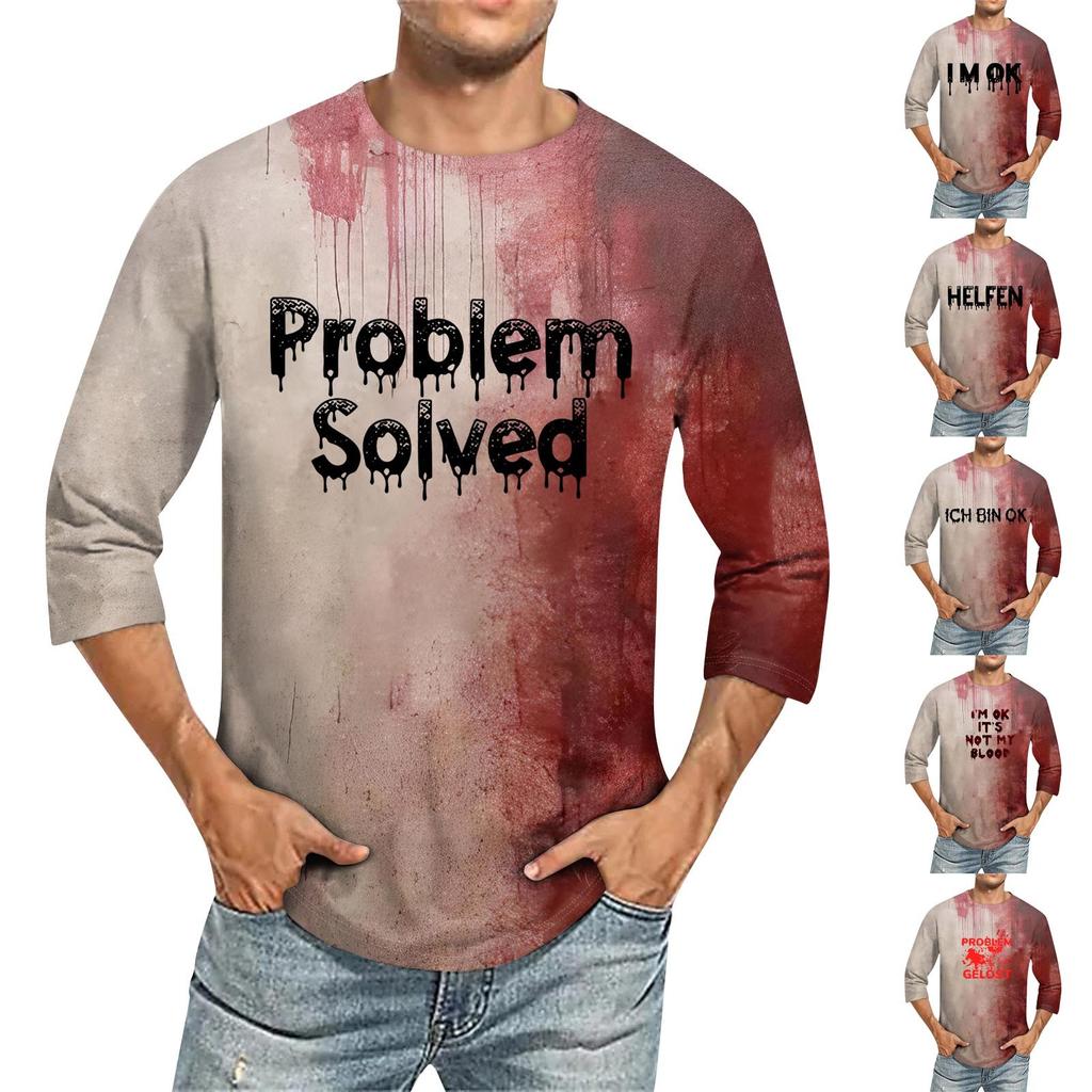 Мужская однотонная футболка с круглым вырезом и рукавами три четверти — купить товар онлайн с бесплатной доставкой по всему миру!