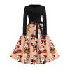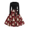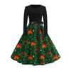 Рождественский принт расклешенное платье для женщин платье с длинным рукавом полые вечерние повседневные платья