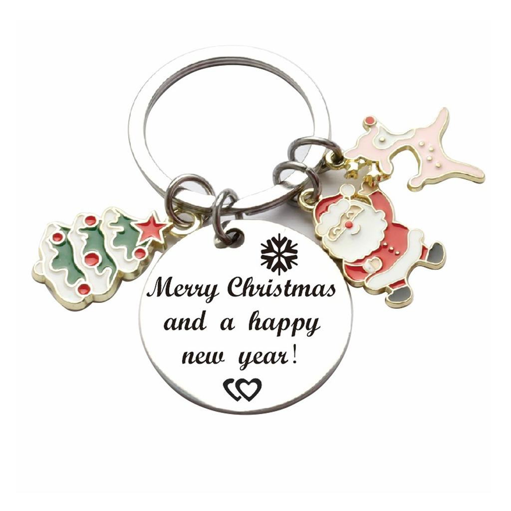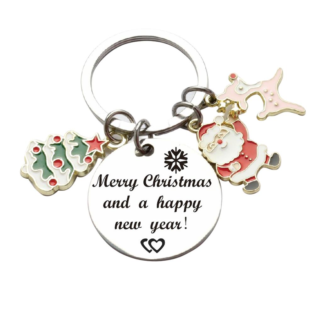 Брелок для ключей на Рождество и Новый год с Сантой, елкой и звездой