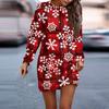 Платье с длинным рукавом для женщин, повседневное рождественское пуловер с принтом, платье-свитер, осень