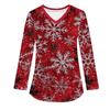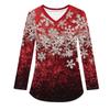 Женская модная рабочая одежда с V-образным вырезом, длинным рукавом и карманом, рождественский принт, футболка, топ