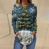 Женская свободная футболка с круглым вырезом и длинными рукавами с принтом в стиле ретро, пуловер на Рождество