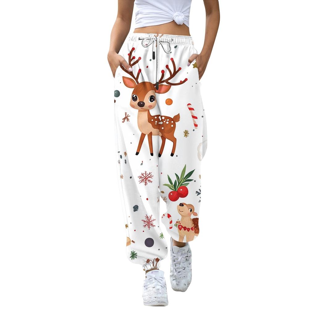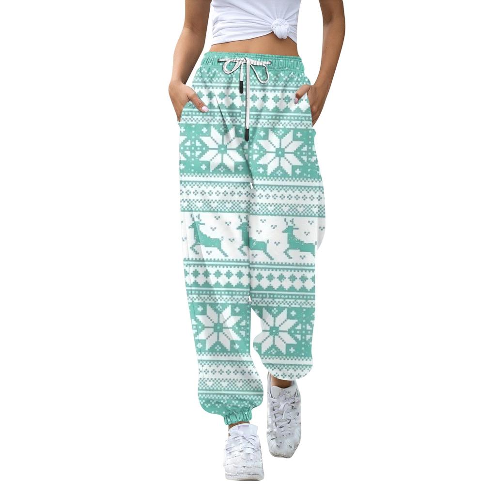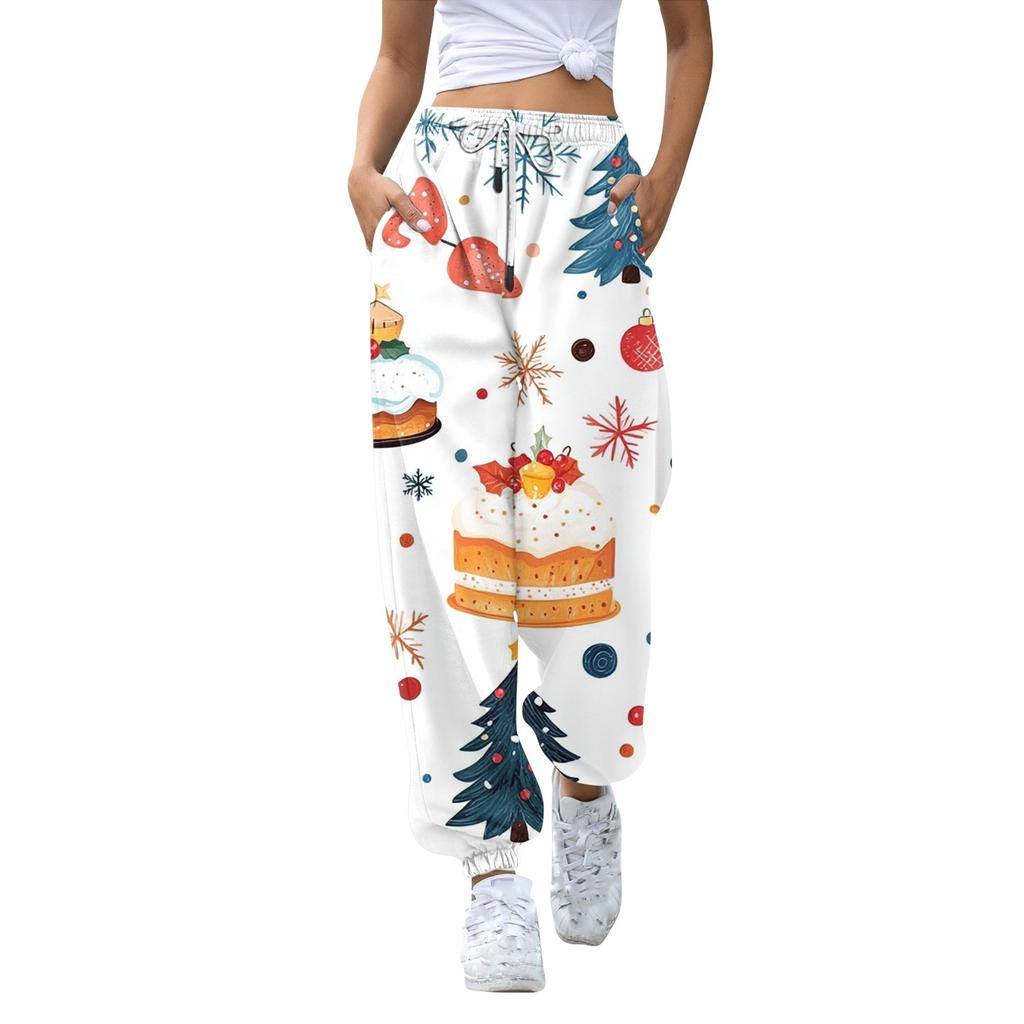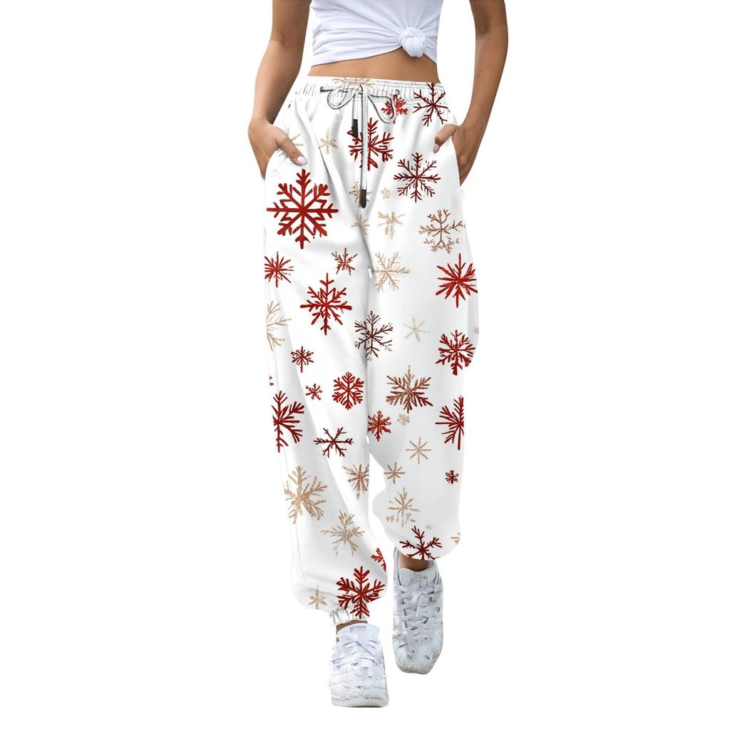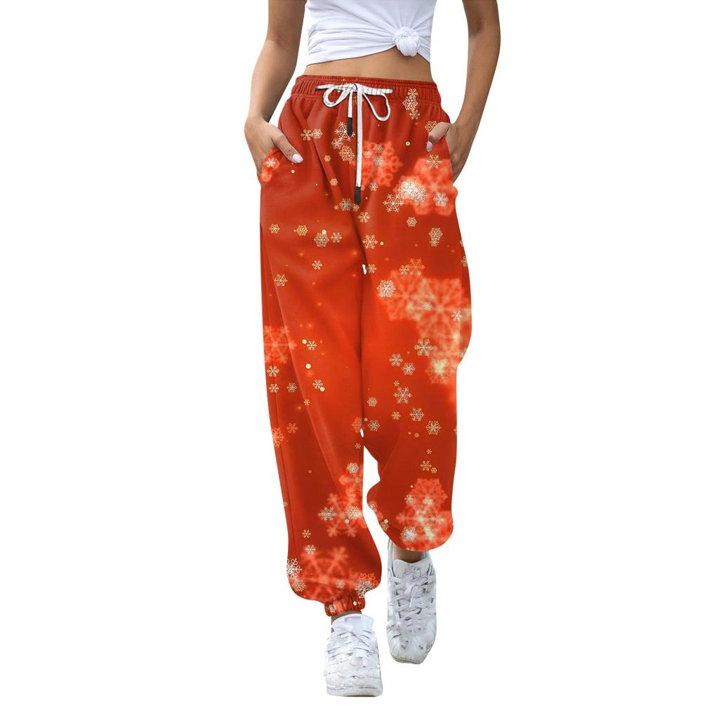 Женские повседневные модные рождественские принтованные повседневные брюки спортивные брюки длинные брюки брюки с эластичной резинкой на талии