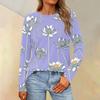 Женская свободная повседневная повседневная футболка с длинным рукавом и круглым вырезом, сплошной цвет, топ
