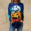 Женская свободная футболка с длинным рукавом с круглым вырезом и принтом, верхний пуловер