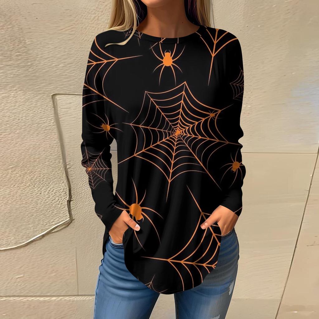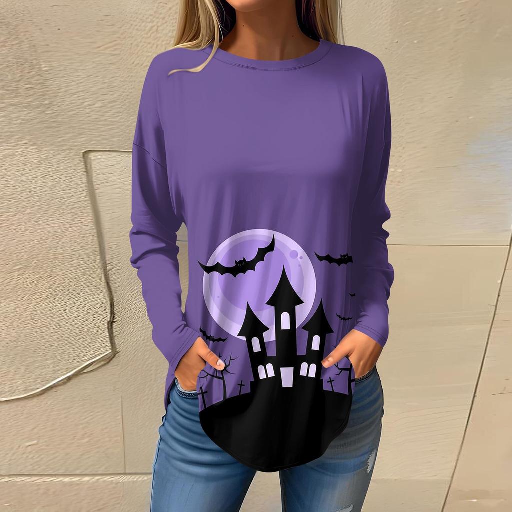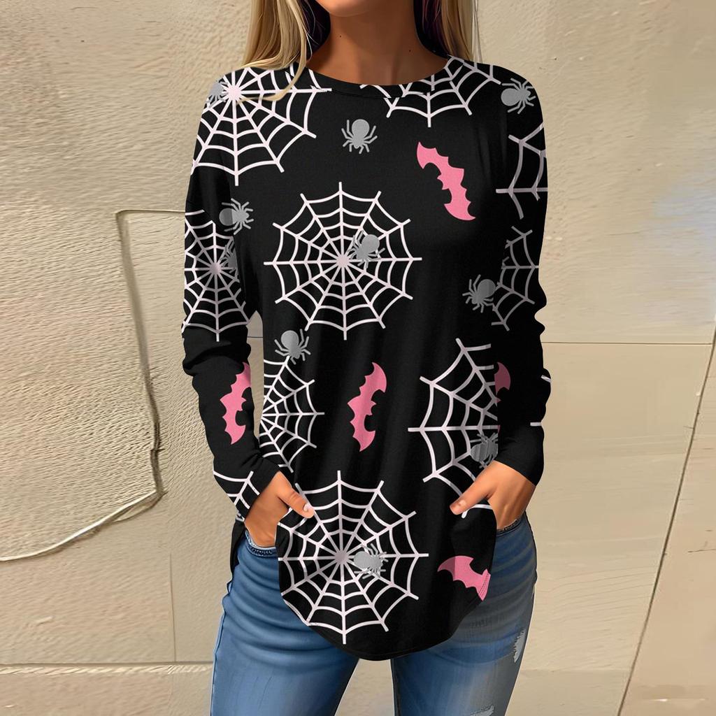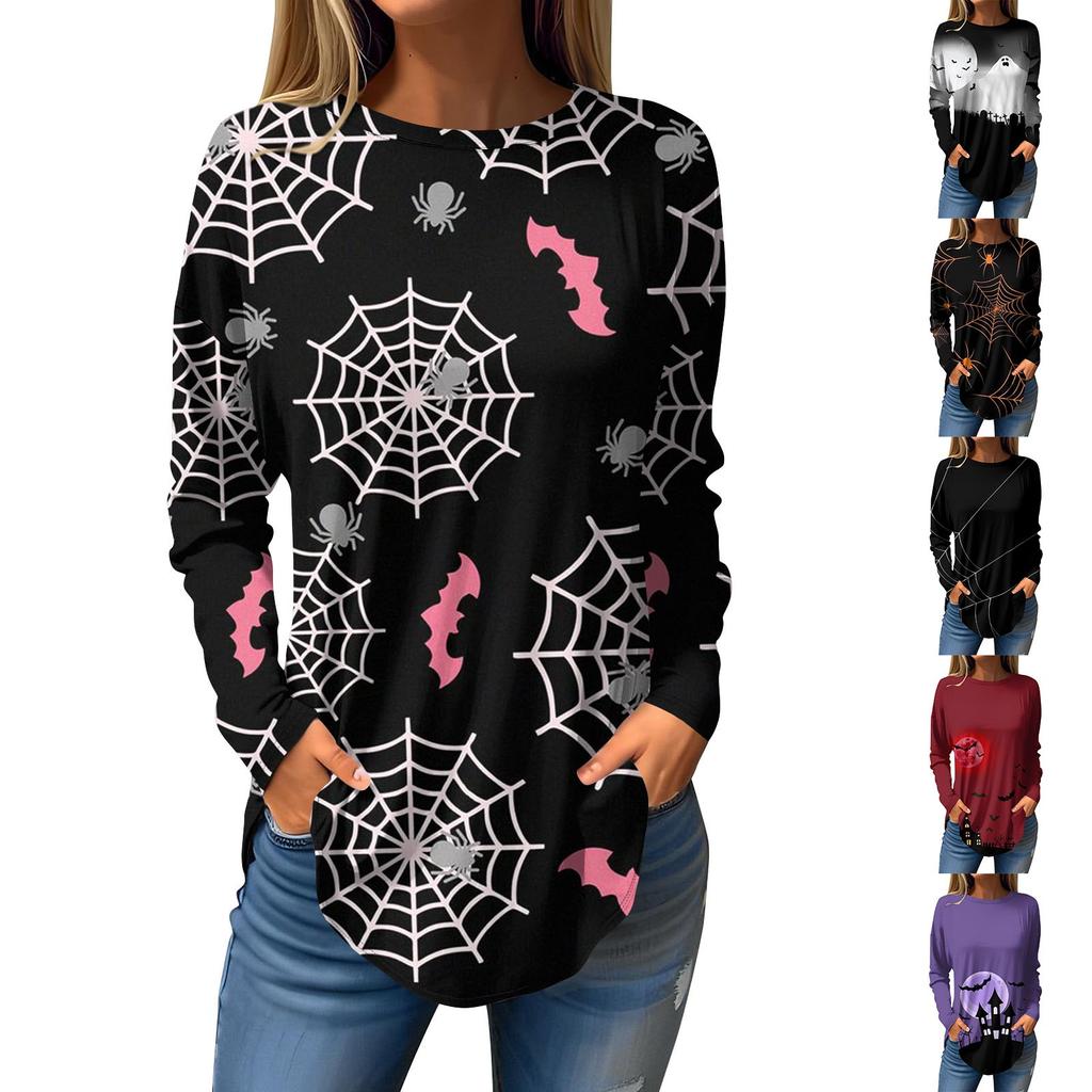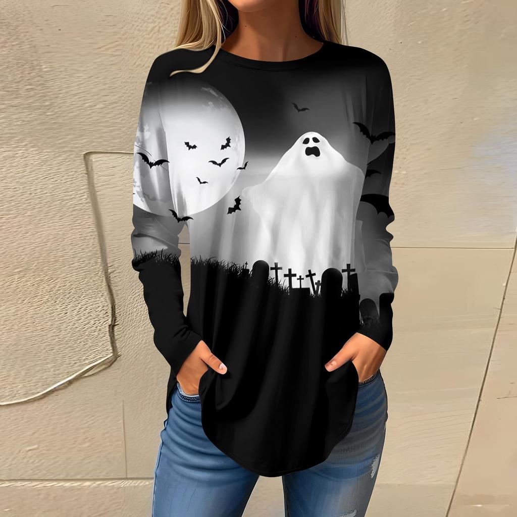 Женская свободная футболка с длинным рукавом с круглым вырезом и принтом, верхний пуловер