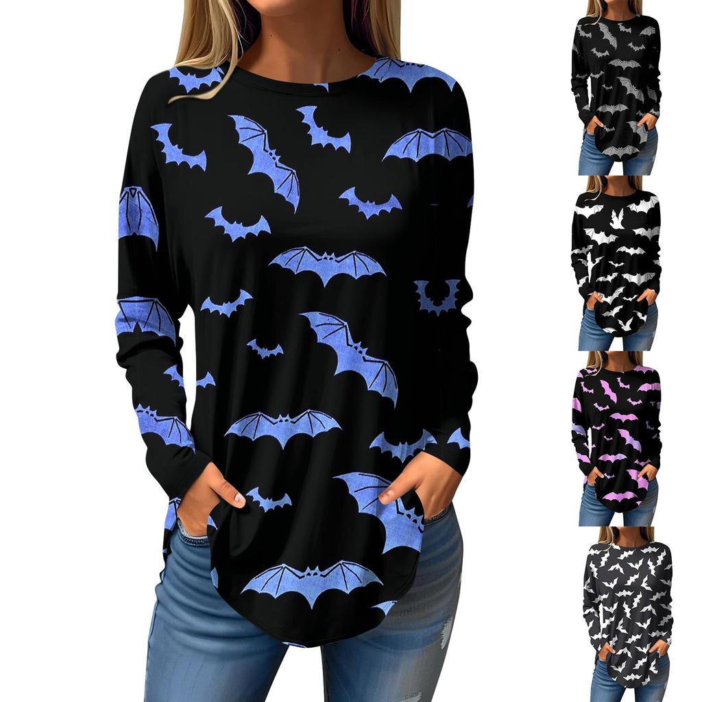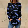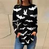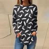 Женская свободная футболка с длинным рукавом с круглым вырезом и принтом, верхний пуловер