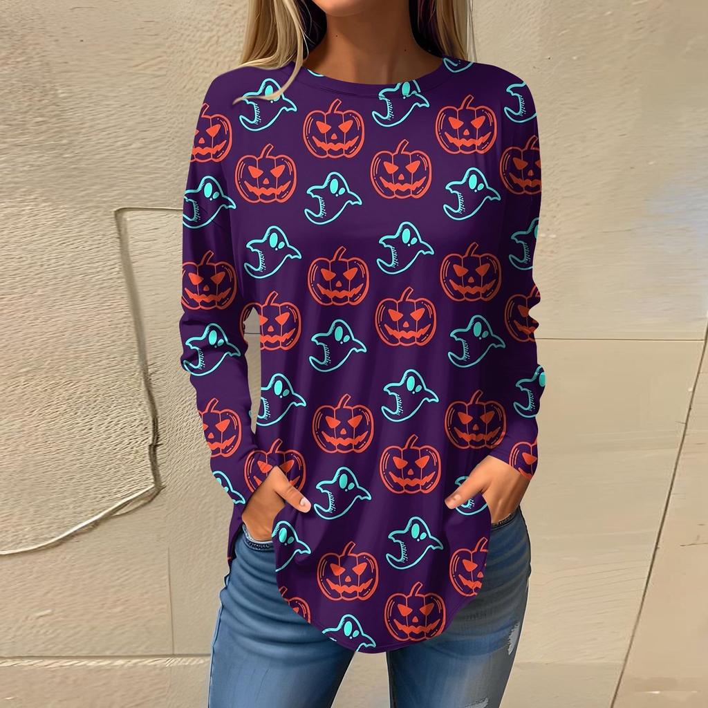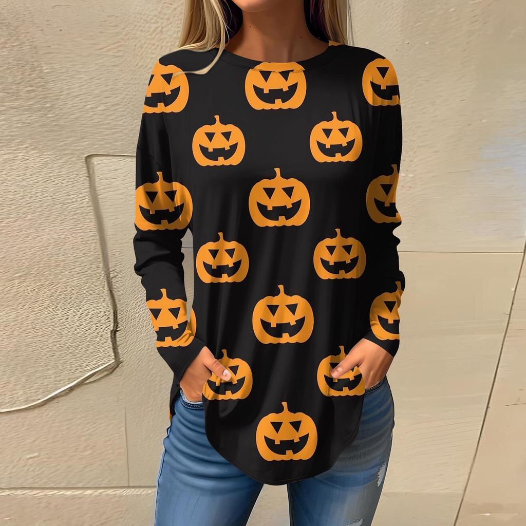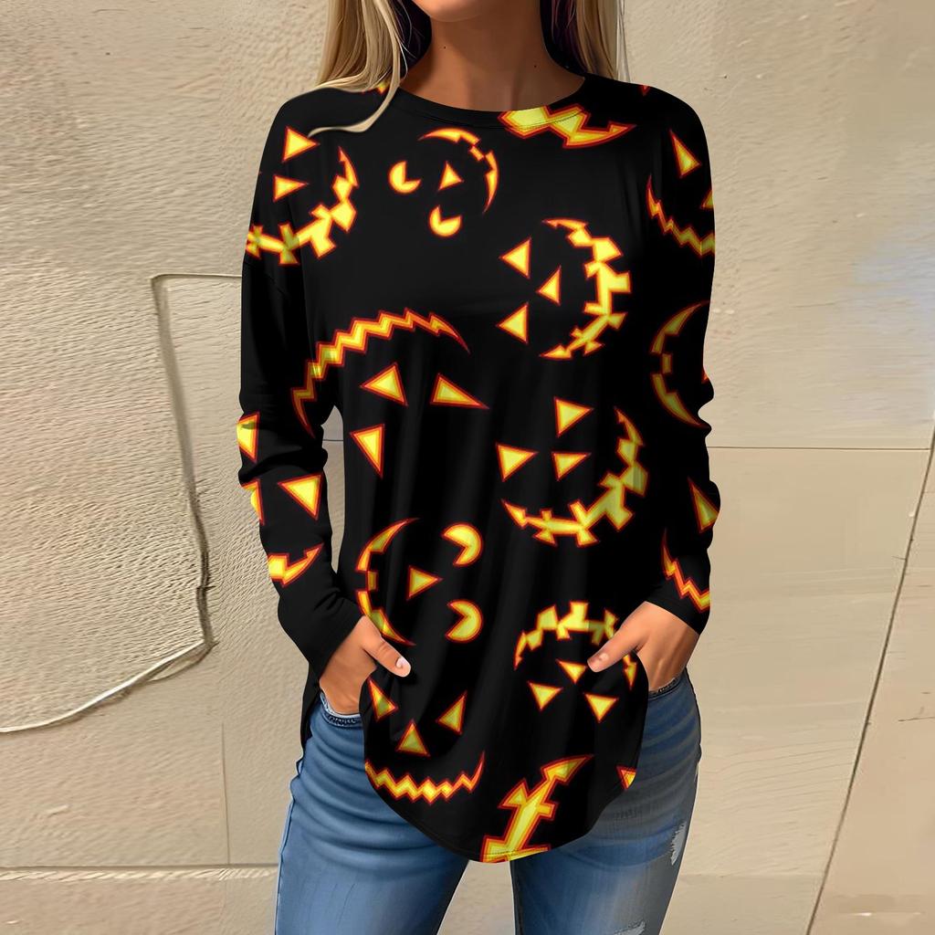 Женская свободная футболка с длинным рукавом с круглым вырезом и принтом, верхний пуловер