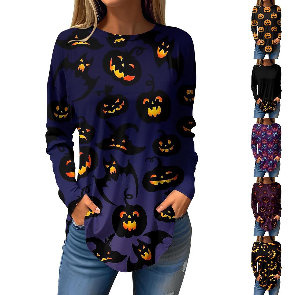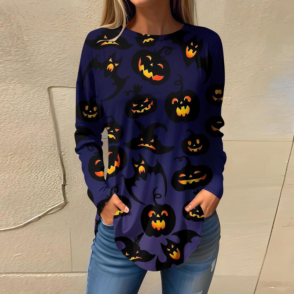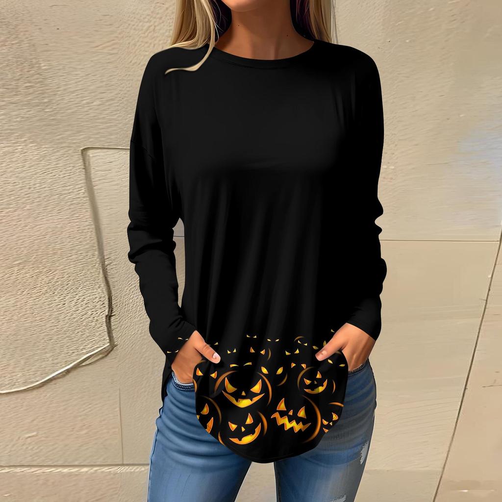 Женская свободная футболка с длинным рукавом с круглым вырезом и принтом, верхний пуловер