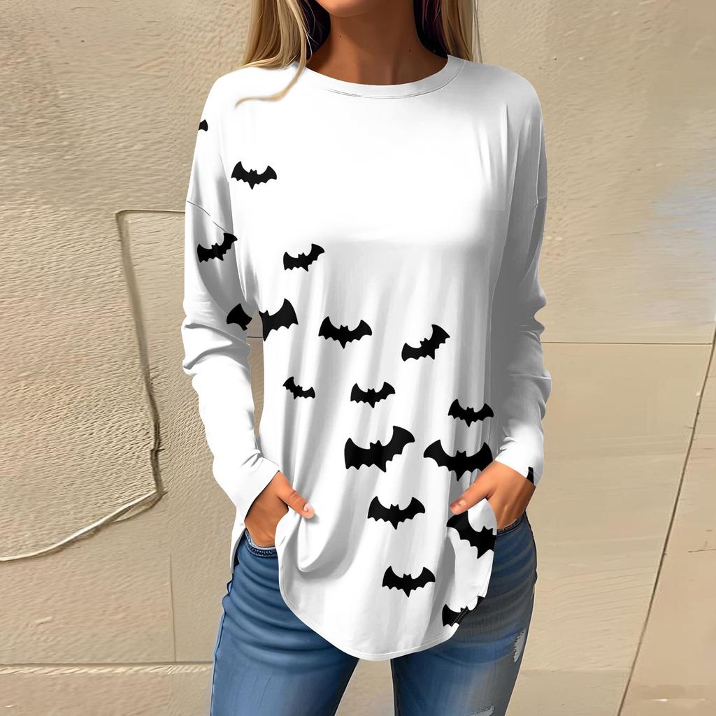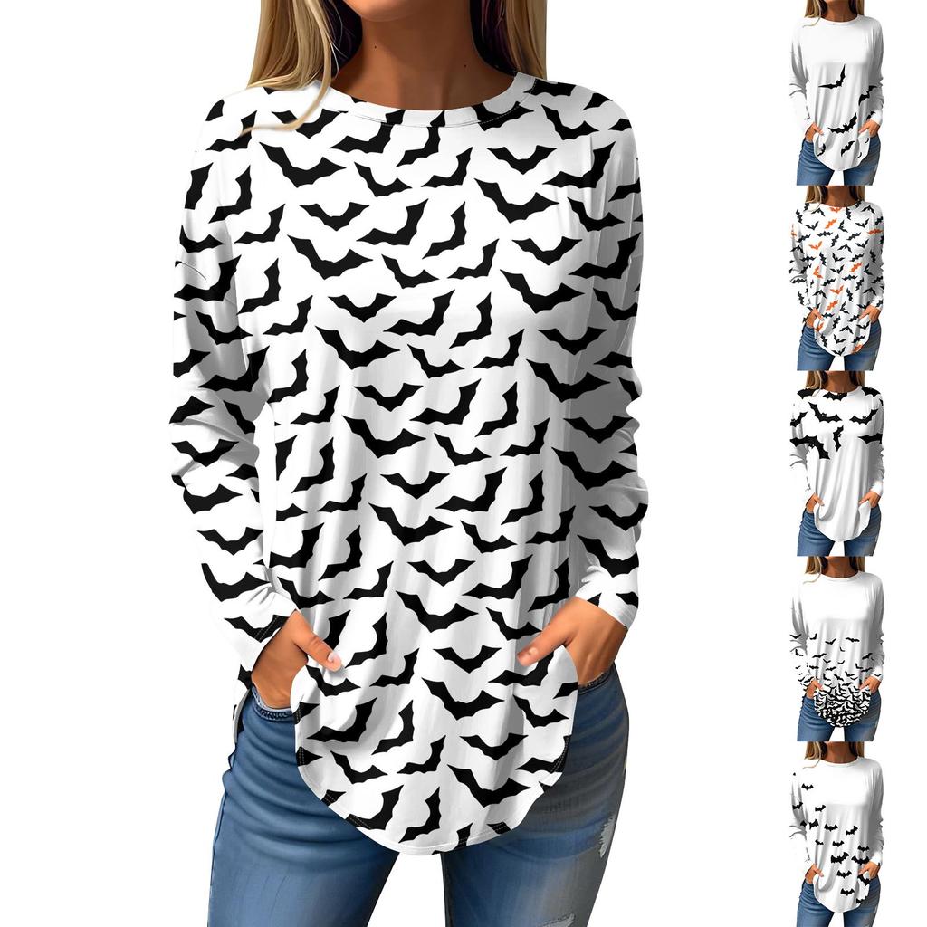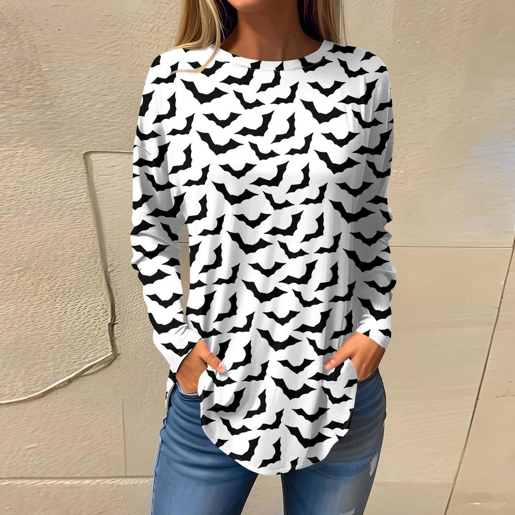 Женская свободная футболка с длинным рукавом с круглым вырезом и принтом, верхний пуловер
