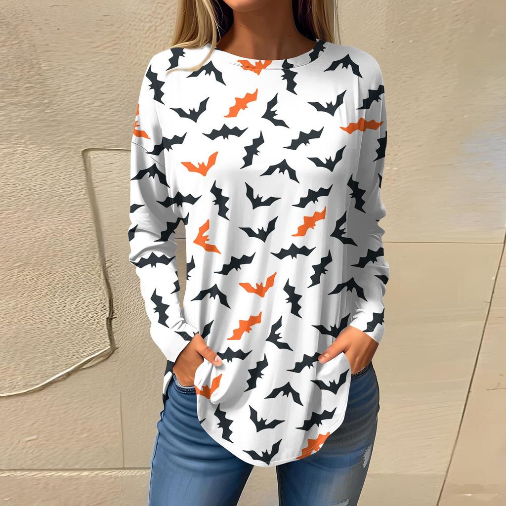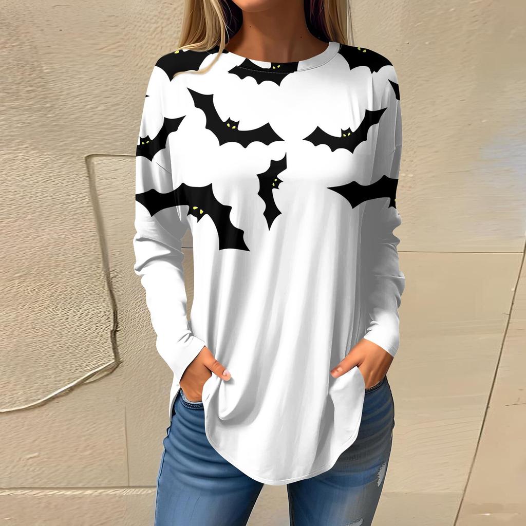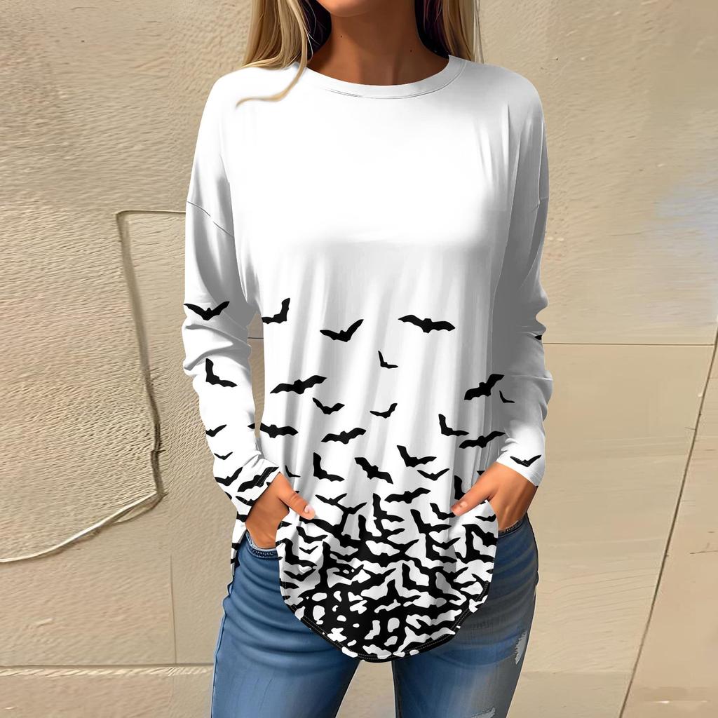 Женская свободная футболка с длинным рукавом с круглым вырезом и принтом, верхний пуловер