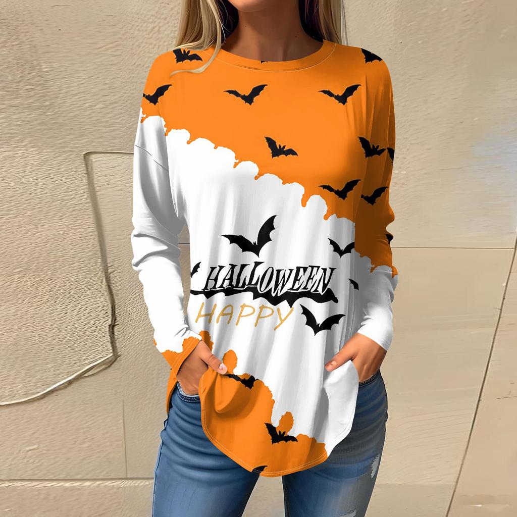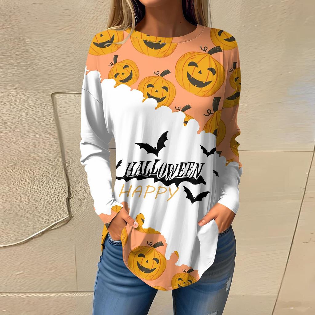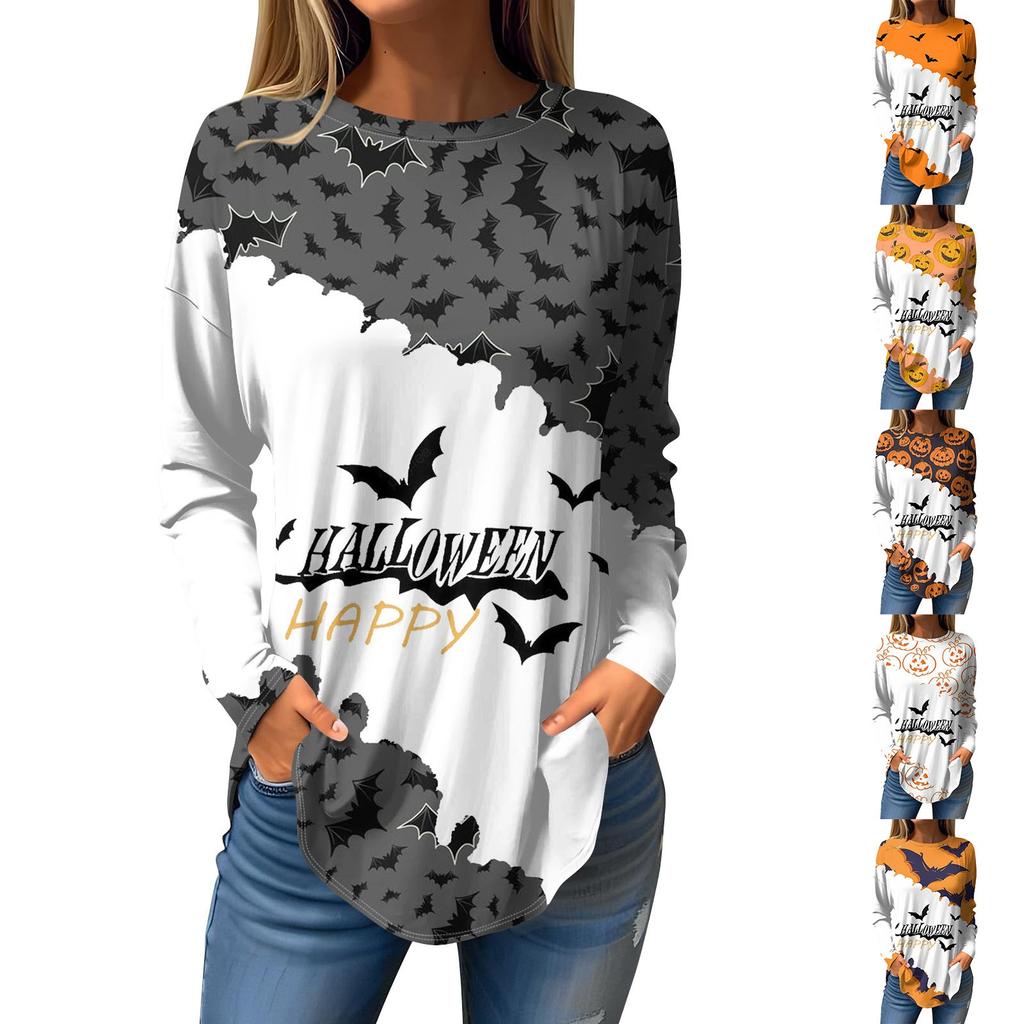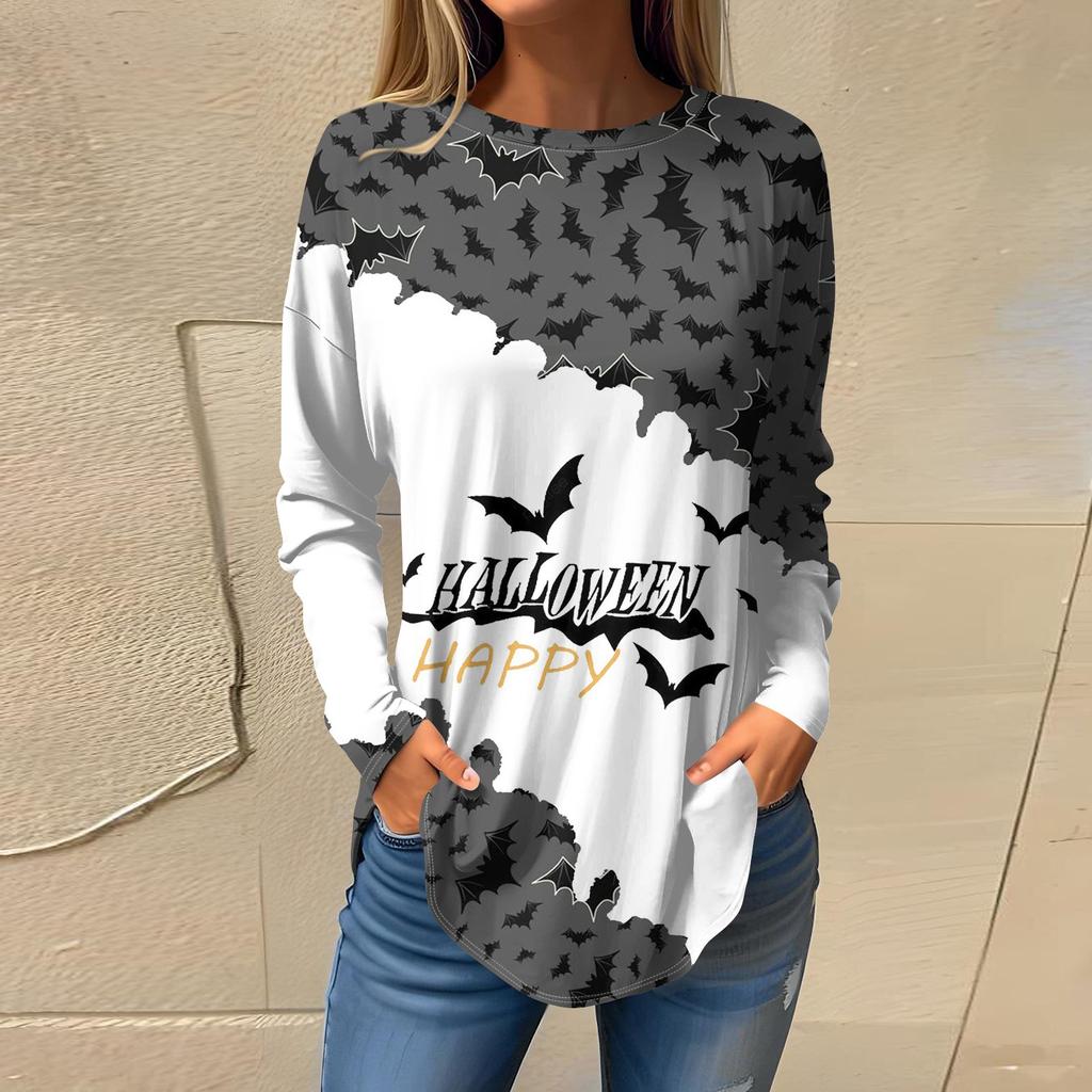 Женская свободная футболка с длинным рукавом с круглым вырезом и принтом, верхний пуловер