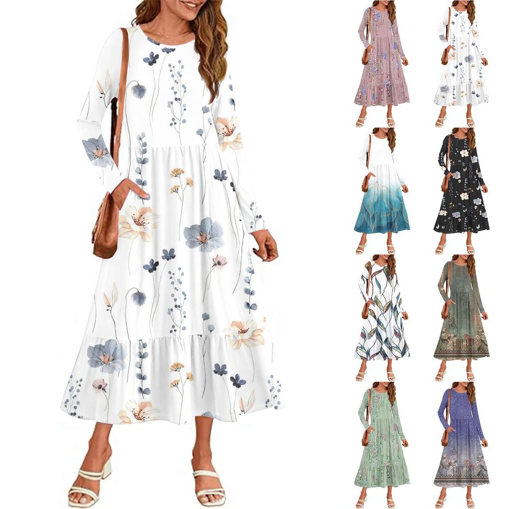 Женское повседневное платье с принтом, весна-осень, карман, круглый вырез, длинные рукава, платья — купить товар онлайн с бесплатной доставкой до всему миру!