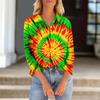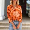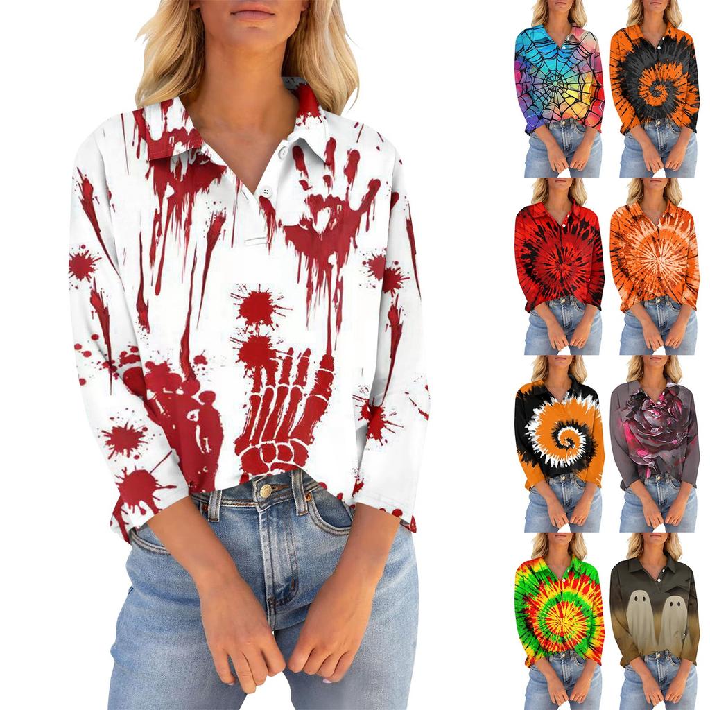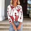 Женская футболка с рукавами семь четвертей, V-образным вырезом, застегивающаяся на пуговицы, с принтом свободного кроя на Хэллоуин