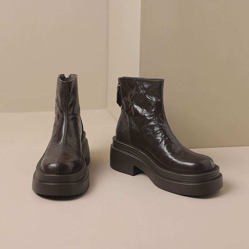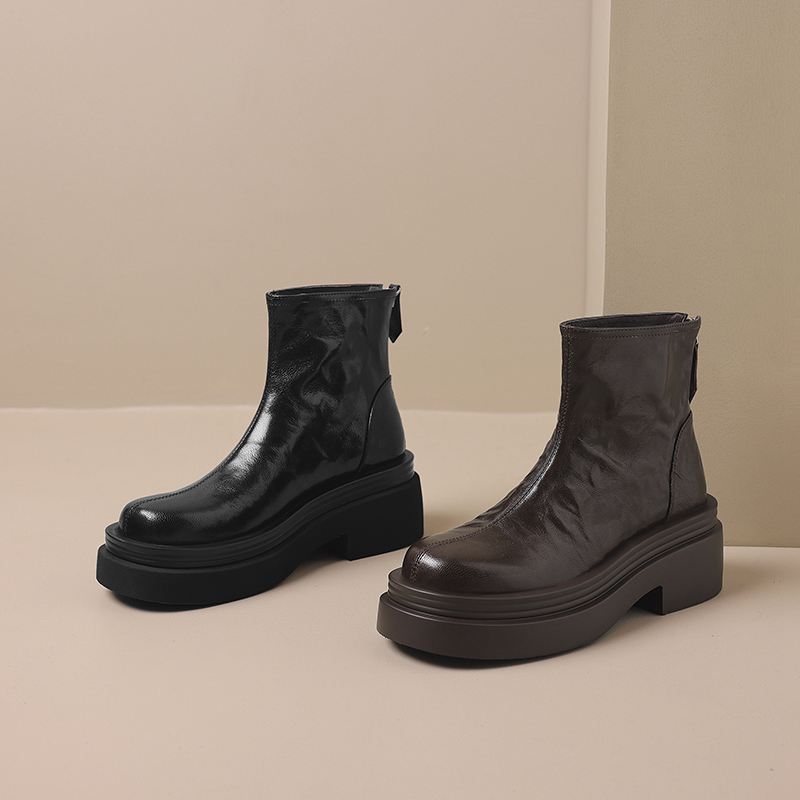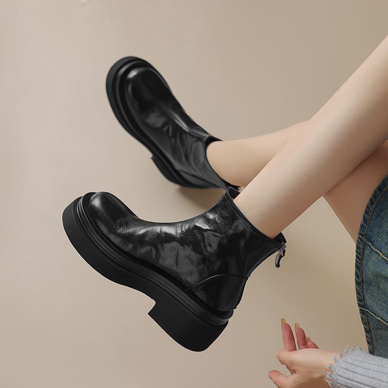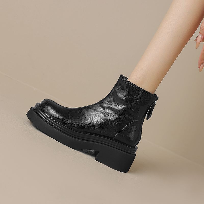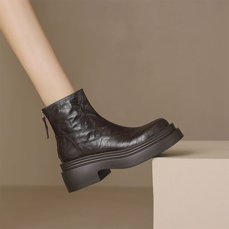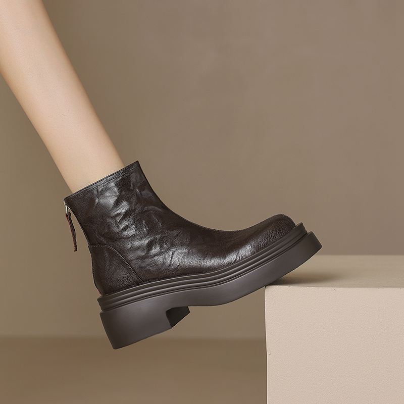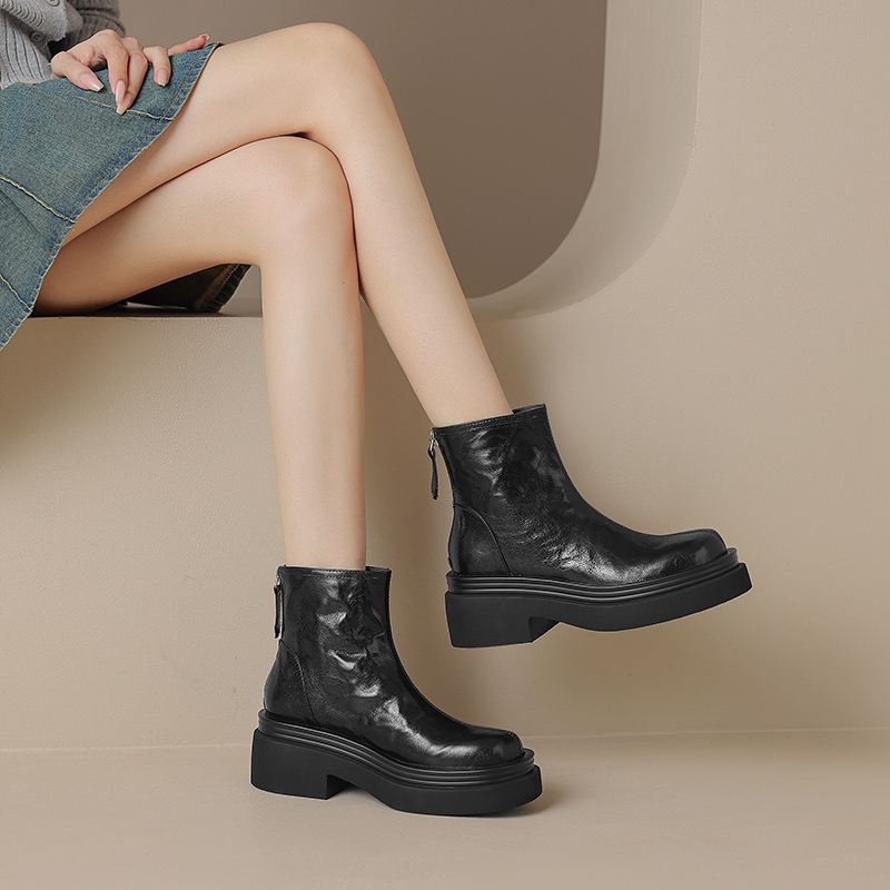 Krazing Pot Овчина Осенне-зимняя обувь Мотоциклетные ботинки с толстой подошвой Круглый носок Сохраняют тепло Ботильоны на молнии