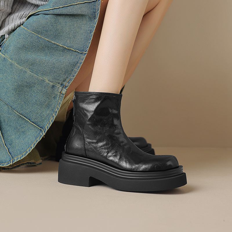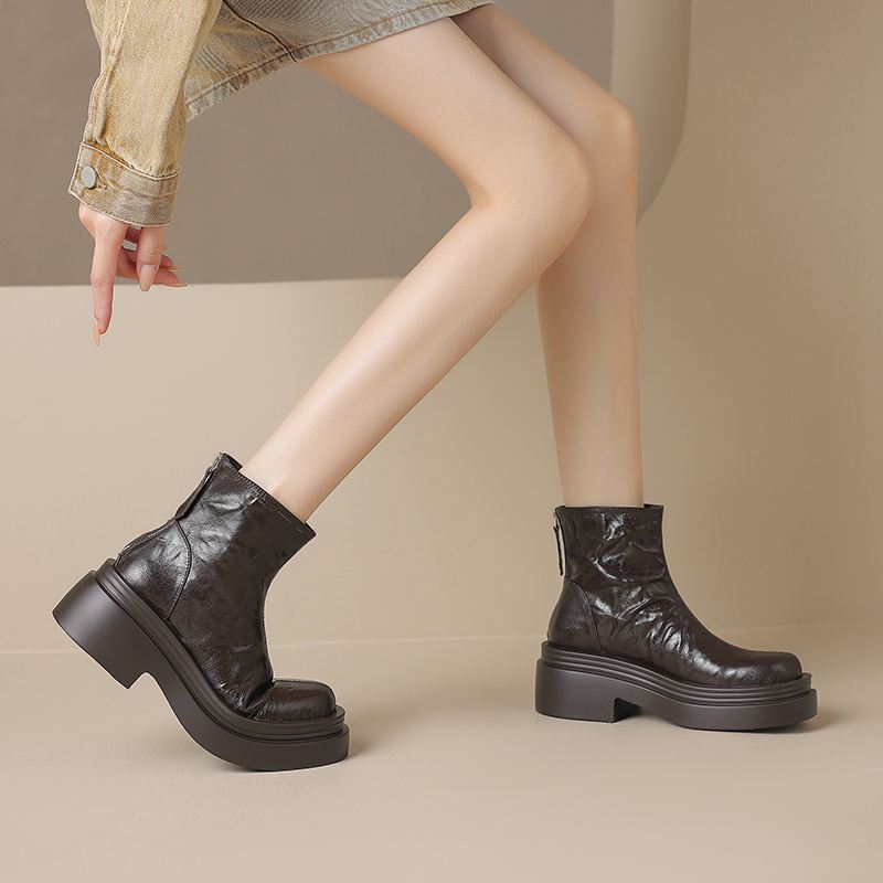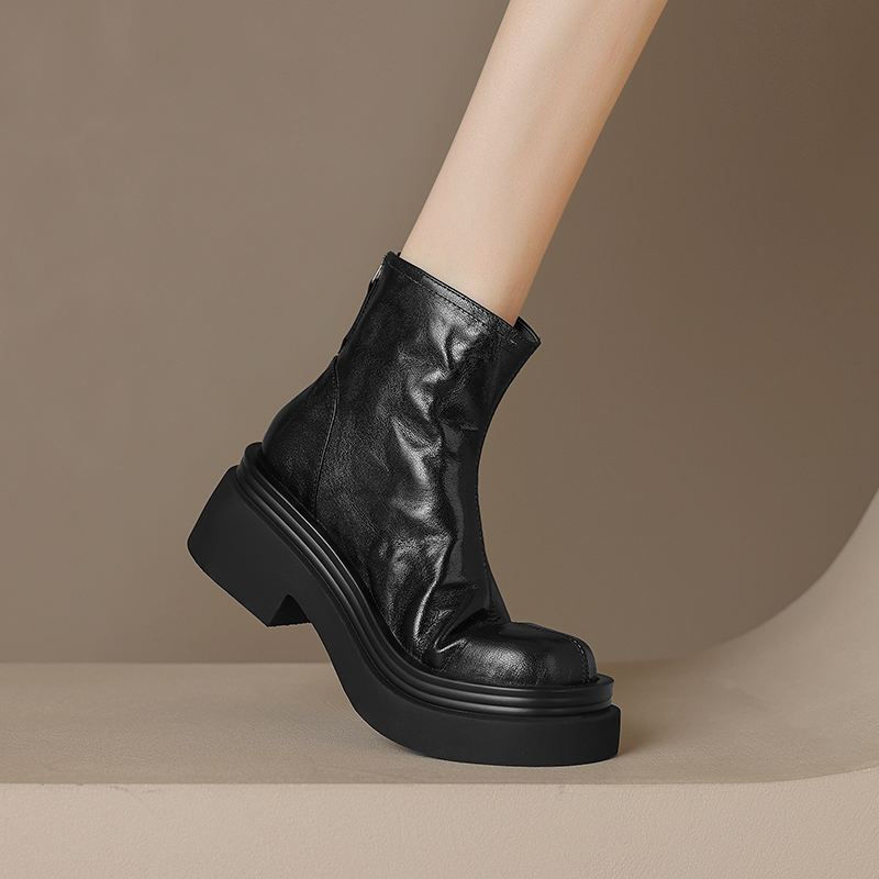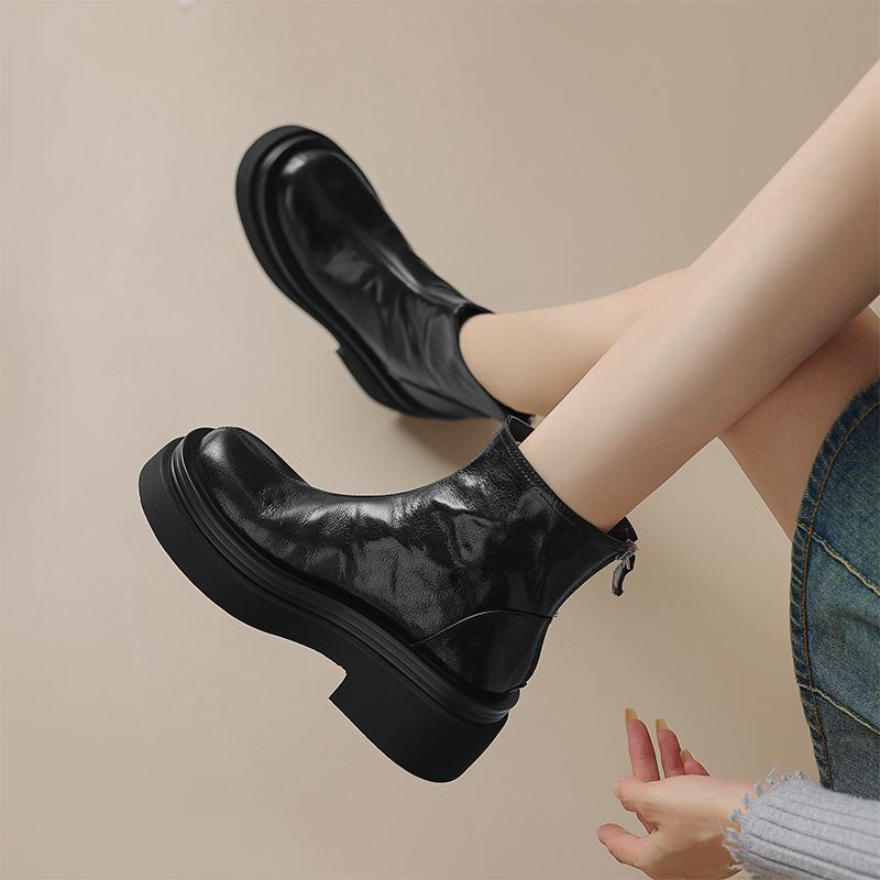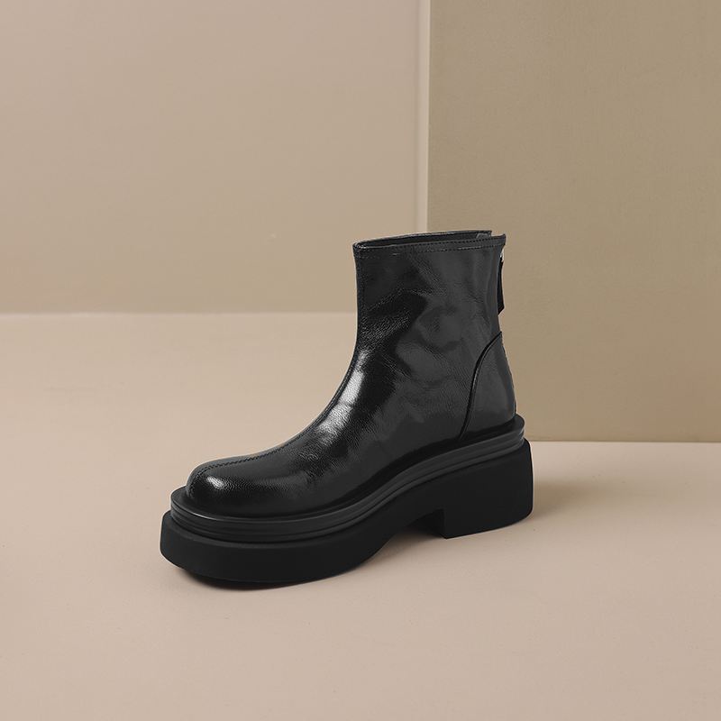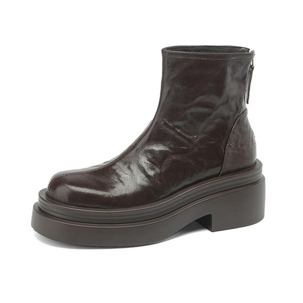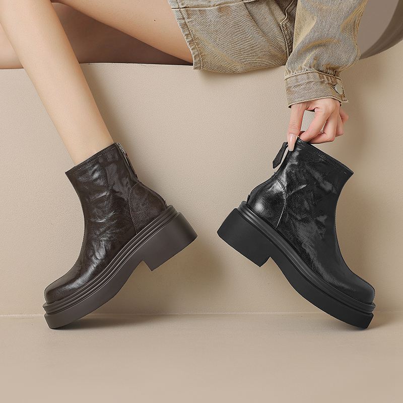 Krazing Pot Овчина Осенне-зимняя обувь Мотоциклетные ботинки с толстой подошвой Круглый носок Сохраняют тепло Ботильоны на молнии