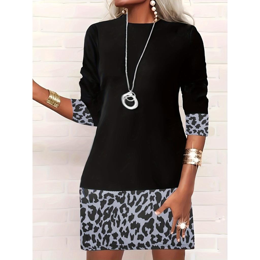 Платье с цветными блоками и леопардовым принтом, с длинными рукавами для женщин, повседневное платье с круглым вырезом, весна/осень — купить товар онлайн с бесплатной доставкой по всему миру!