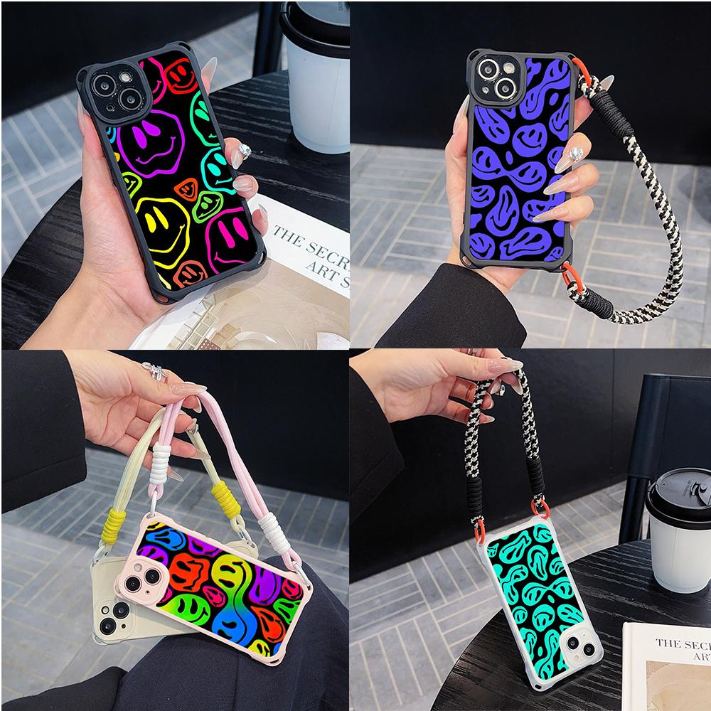 Мягкие чехлы для телефонов Ae88 Lovely Smiley Art для iPhone 16 15 14 13 12 11 Pro Max XR с ремешком на запястье, защитной крышкой для углов