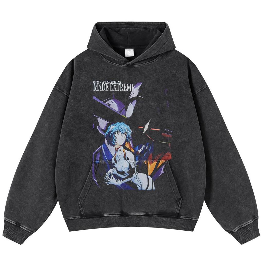 Уличная одежда Harajuku Anime Graphic Washed Black Oversize Unisex Y2K Hoodie