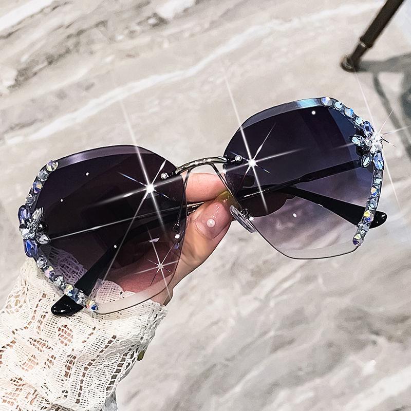 Модные солнцезащитные очки без оправы Temperament для женщин – тонкие, удобные для большого лица, с защитой от ультрафиолета
