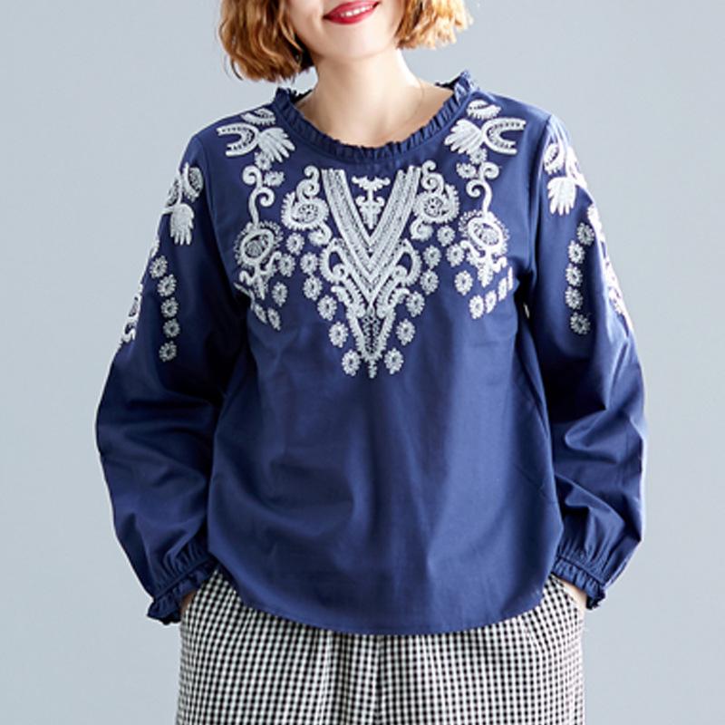 Женская повседневная блузка с длинным рукавом и оборками, вышитыми цветами, рукавом «летучая мышь» с круглым вырезом, женские хлопковые топы — купить товар онлайн с бесплатной доставкой по всему миру!