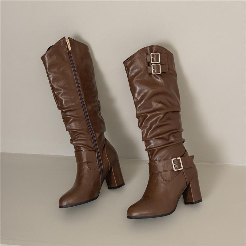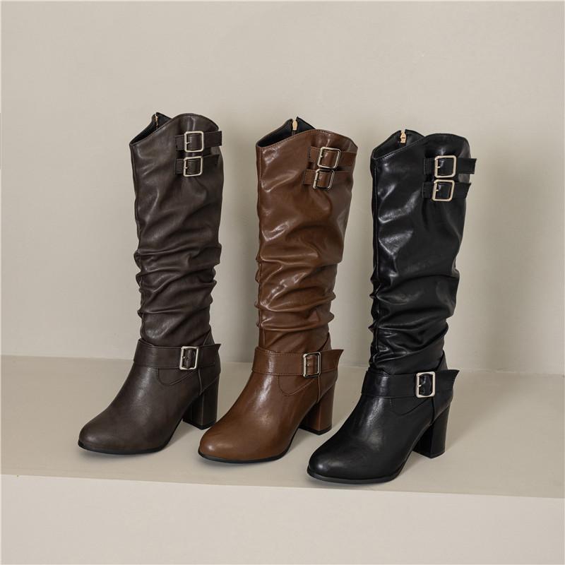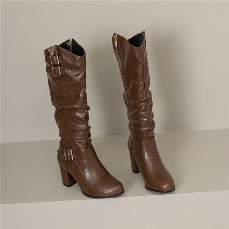 Женские сапоги на высоком каблуке осень-зима новые однотонные толстые каблуки большого размера повседневные римские сапоги среднего размера