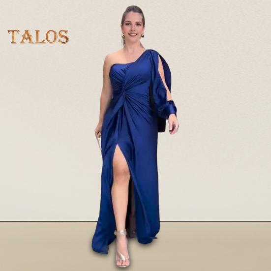 Элегантный дизайн на одно плечо: Выделитесь элегантным наклонным вырезом на одно плечо и высоким разрезом, который придает этому платью нотку очарования и идеально подходит для того, чтобы произвести впечатление на любом мероприятии.