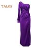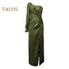 Это женское платье, изготовленное из высококачественного 100% полиэфирного волокна, имеет гладкую атласную поверхность, которая излучает изысканность.. Модель на одно плечо с высоким разрезом добавляет элегантности и очарования общему образу.