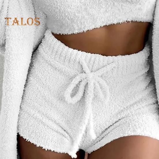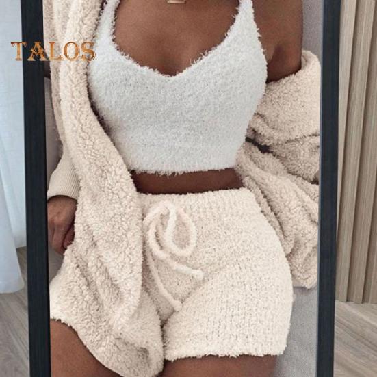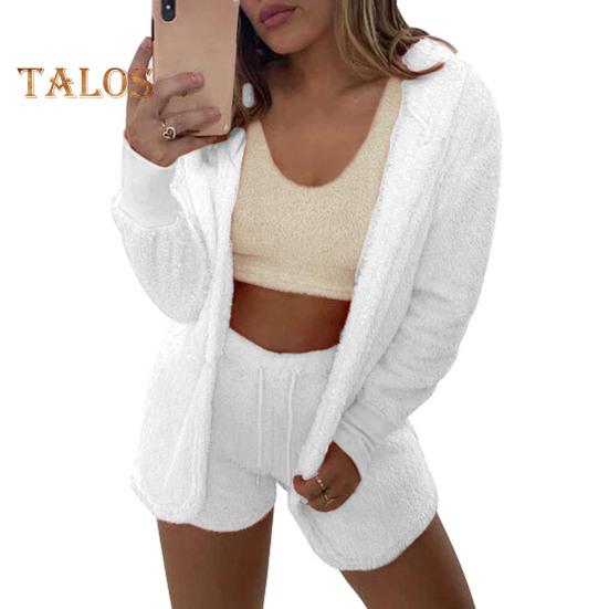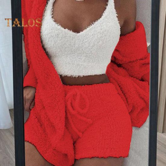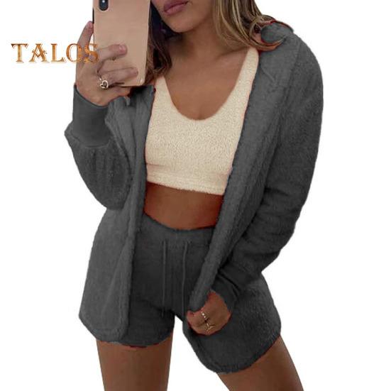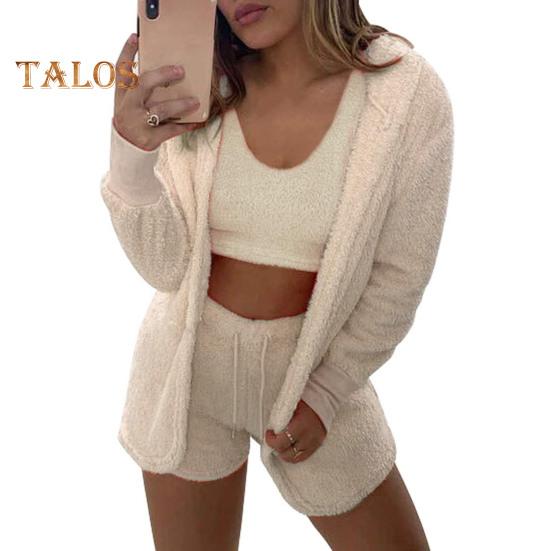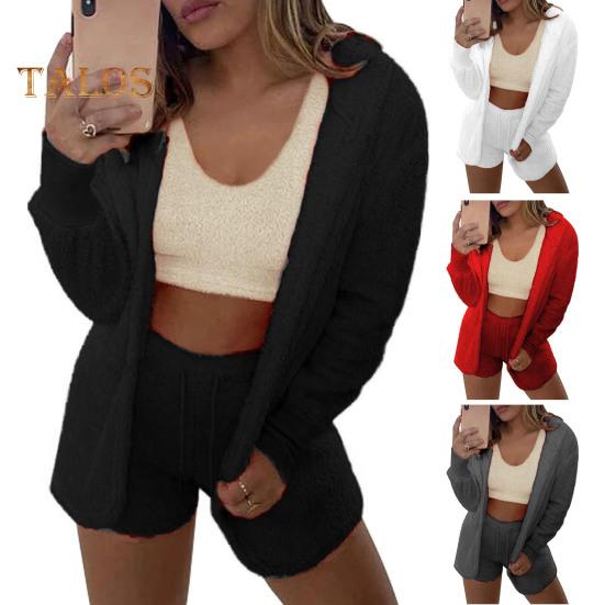 Комплект из 3 предметов: осенне-зимнее женское пальто, жилет, шорты, комплект из плотной плюшевой домашней одежды, одежда для сна, с капюшоном, длинными рукавами, открытая строчка, теплая куртка на шнурке