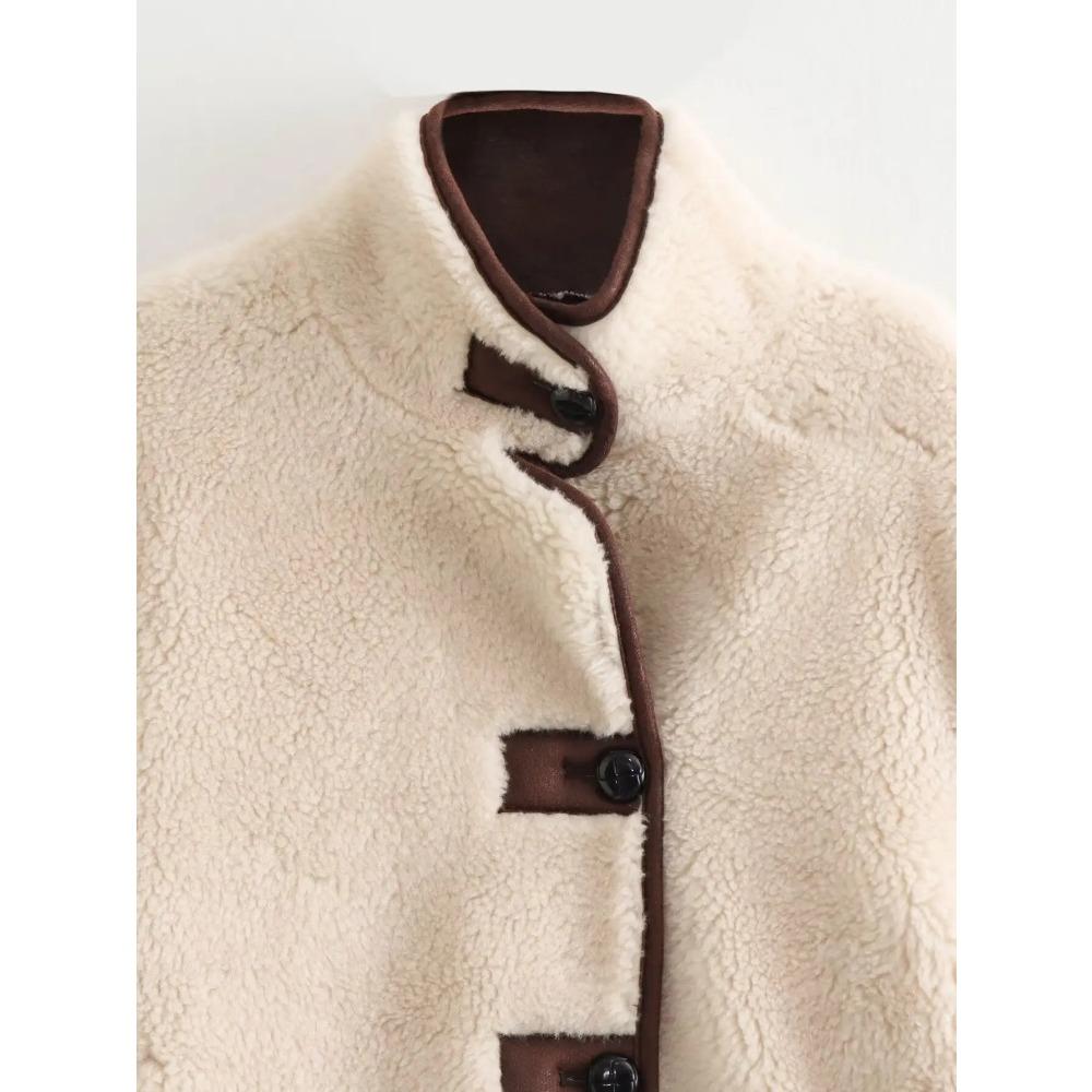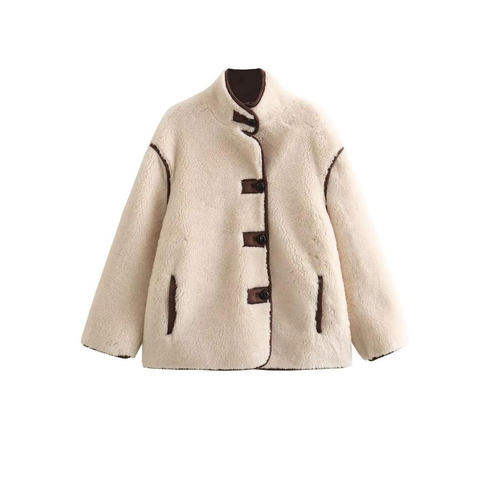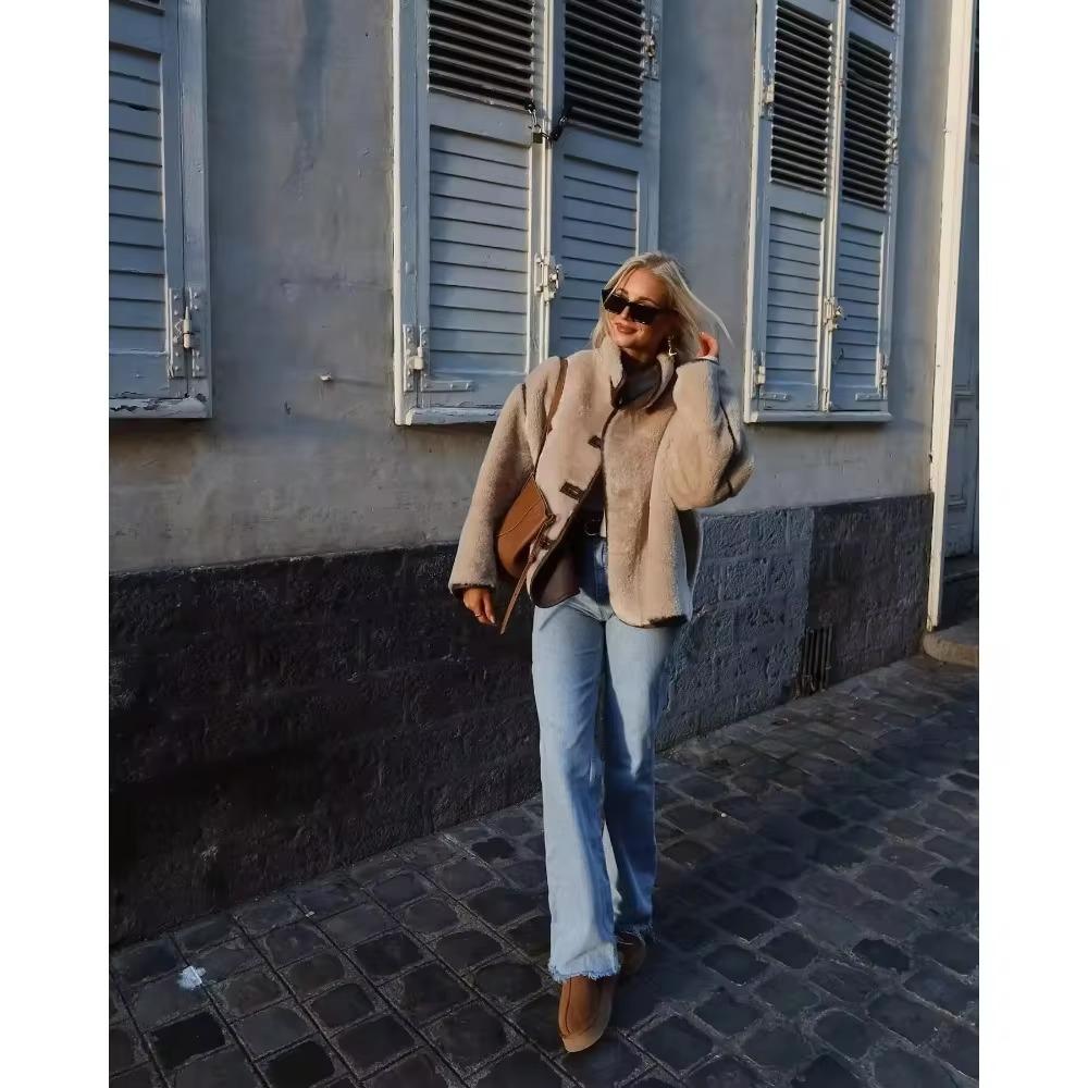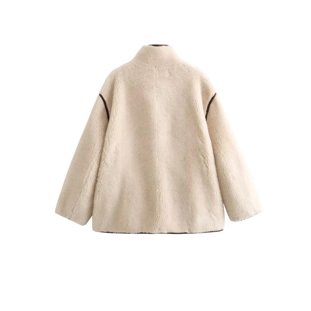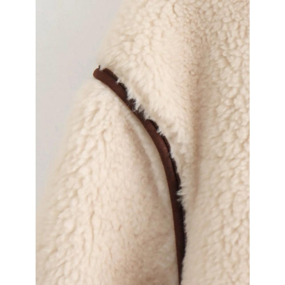 Водолазка флисовая женская верхняя одежда 2024 толстая теплая свободная новая верхняя одежда женская бежевая повседневная куртка с длинным рукавом