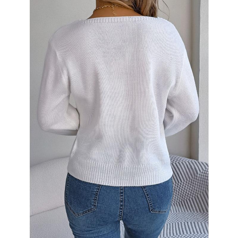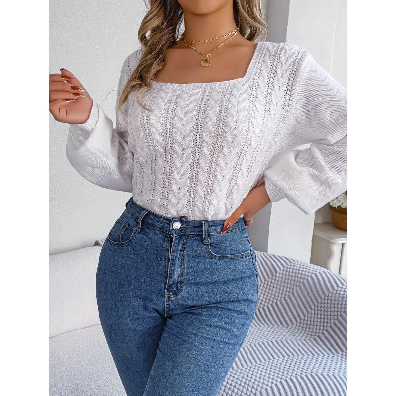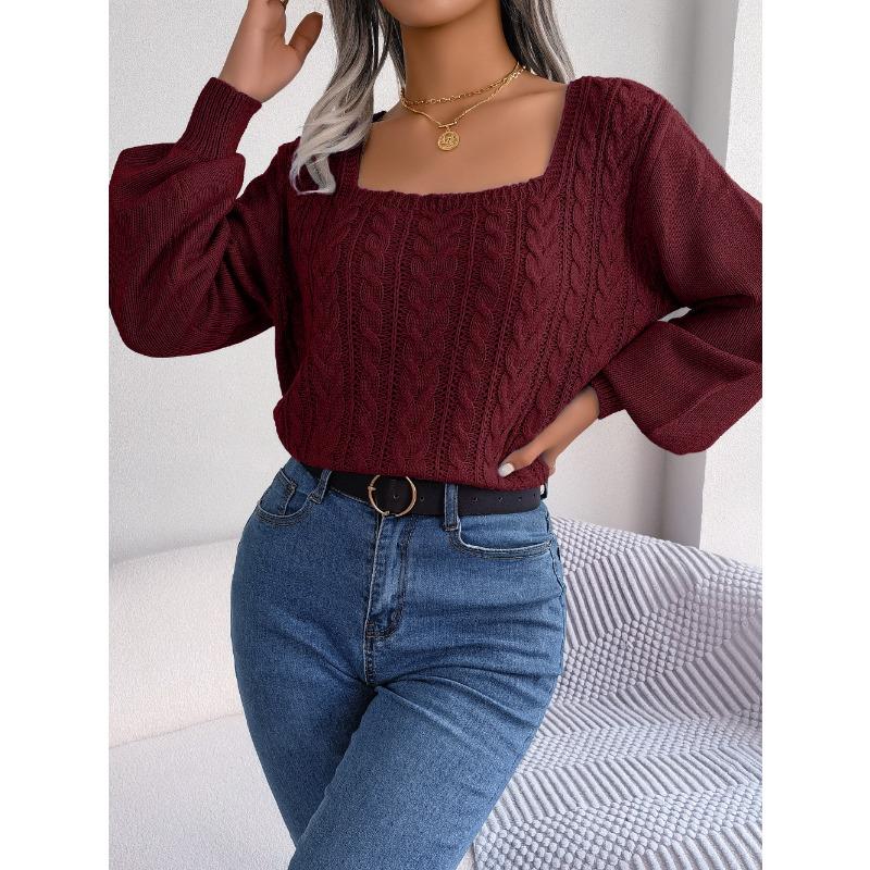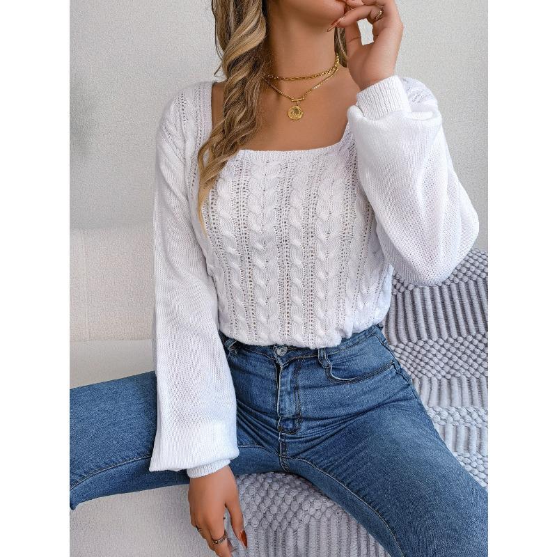 Женский осенне-зимний повседневный свитер с квадратным вырезом и рукавами-фонариками