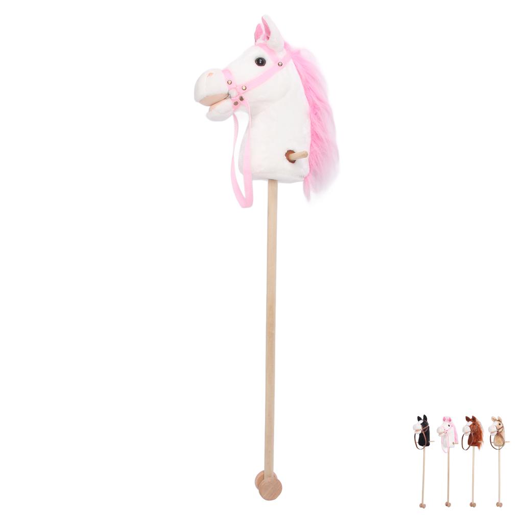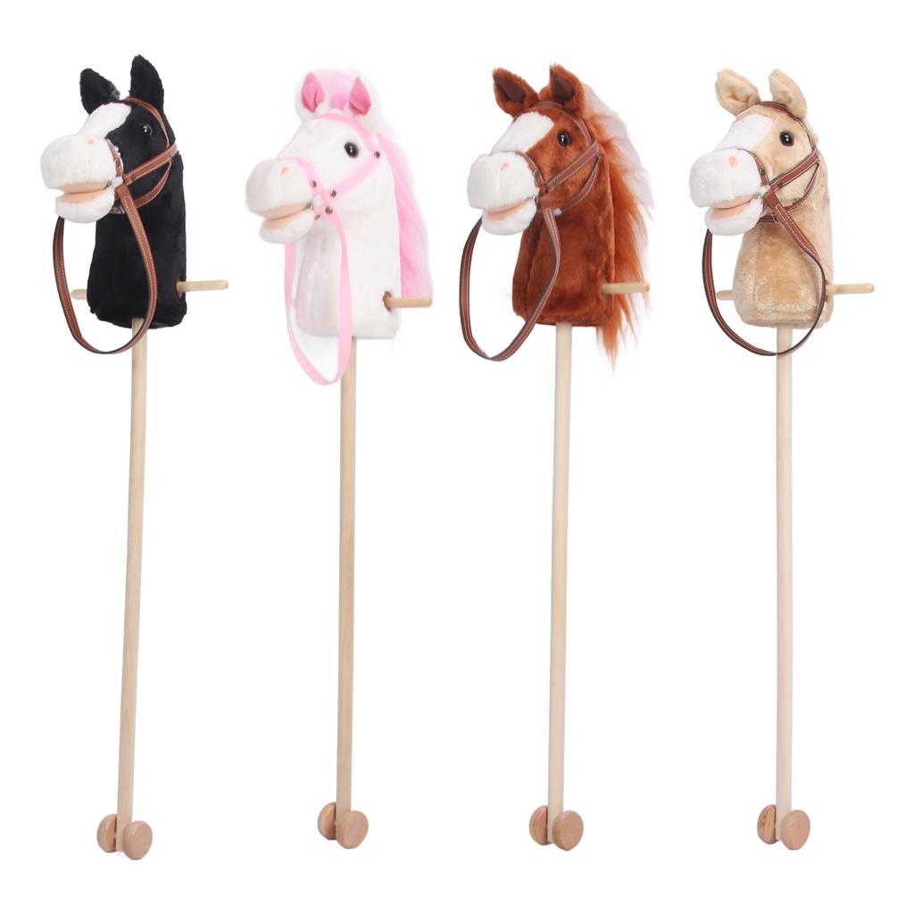 Детская игрушка-палка-лошадь, милая, мягкая, плюшевая, с скользящими колесами
