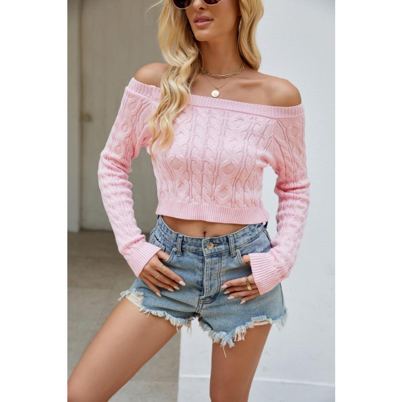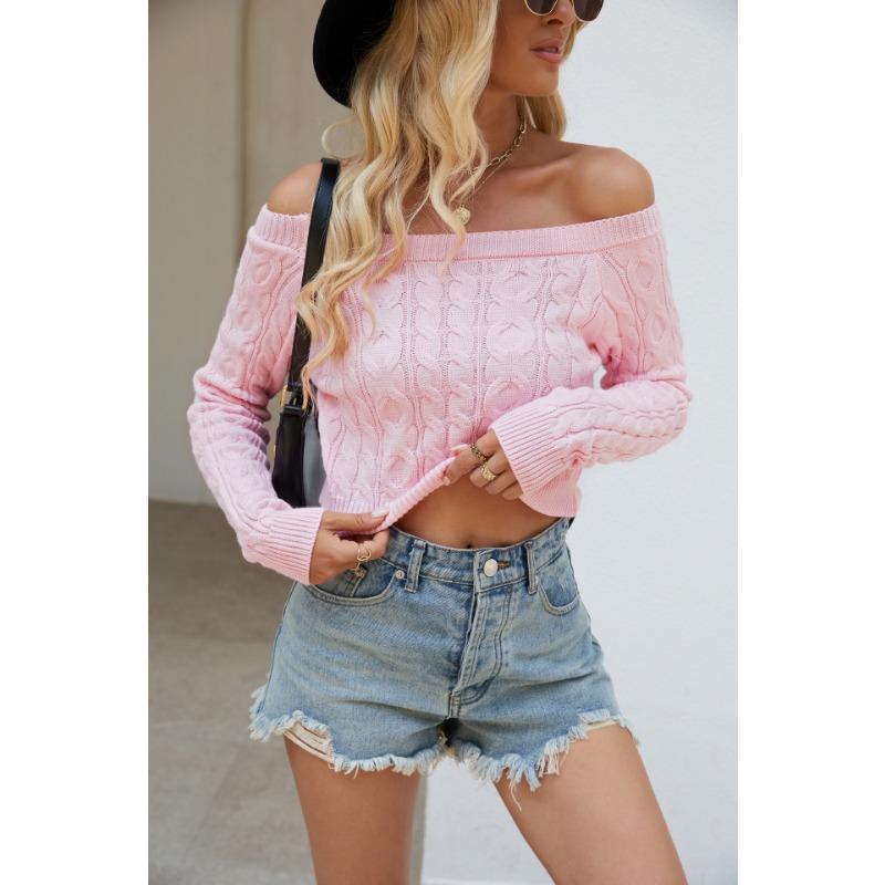 Женский короткий свитер облегающего кроя с перекрученной вязкой и однотонным вырезом, осенне-зимняя коллекция