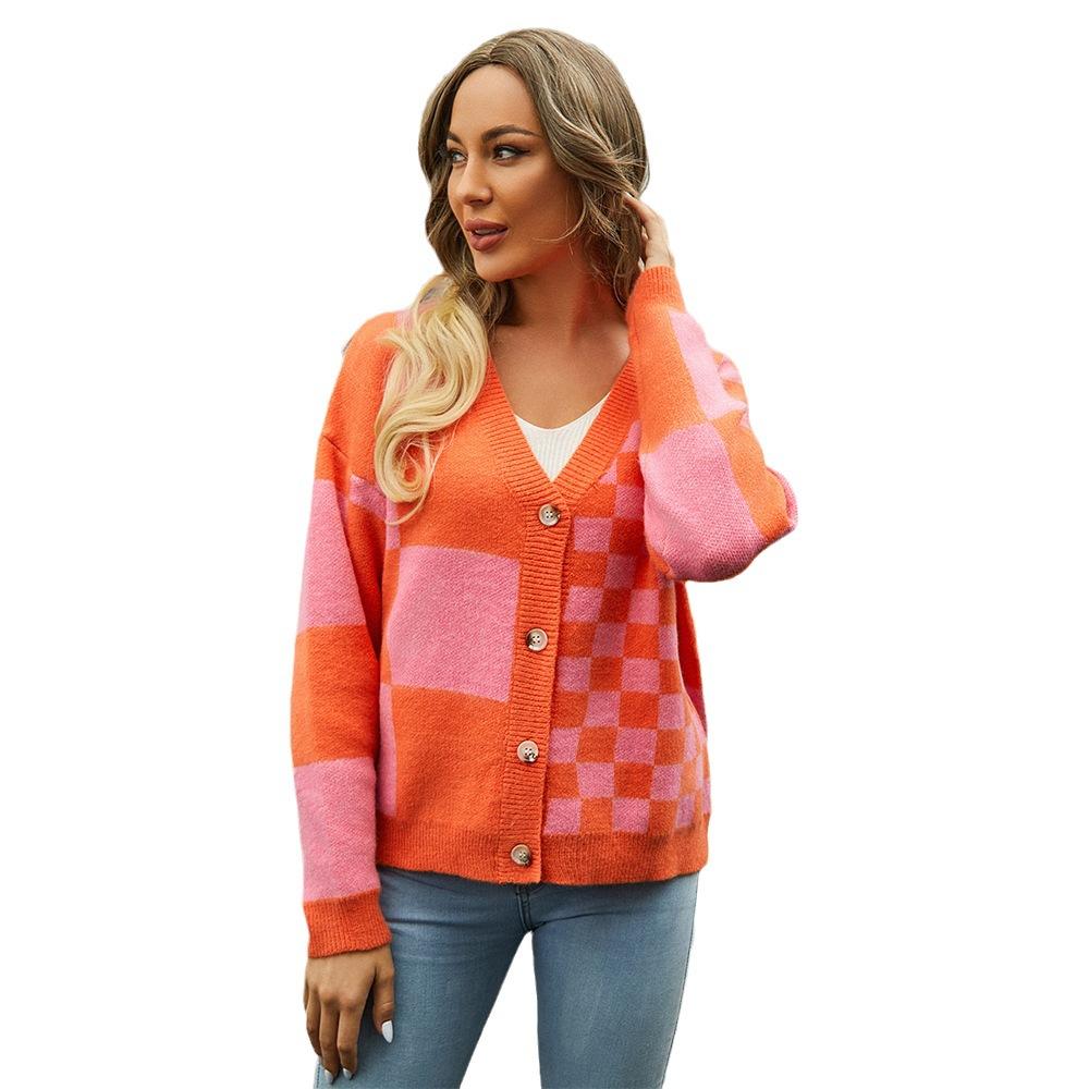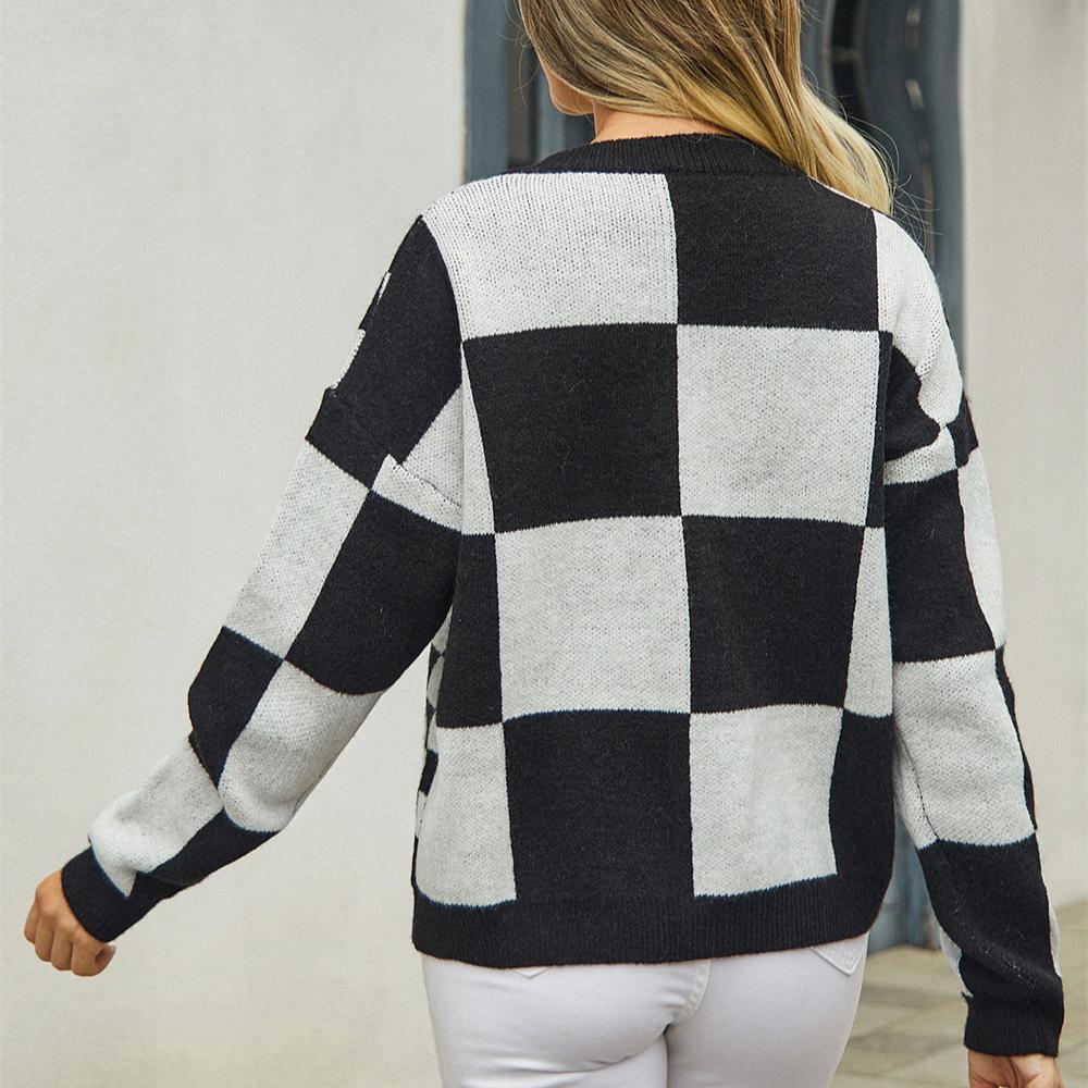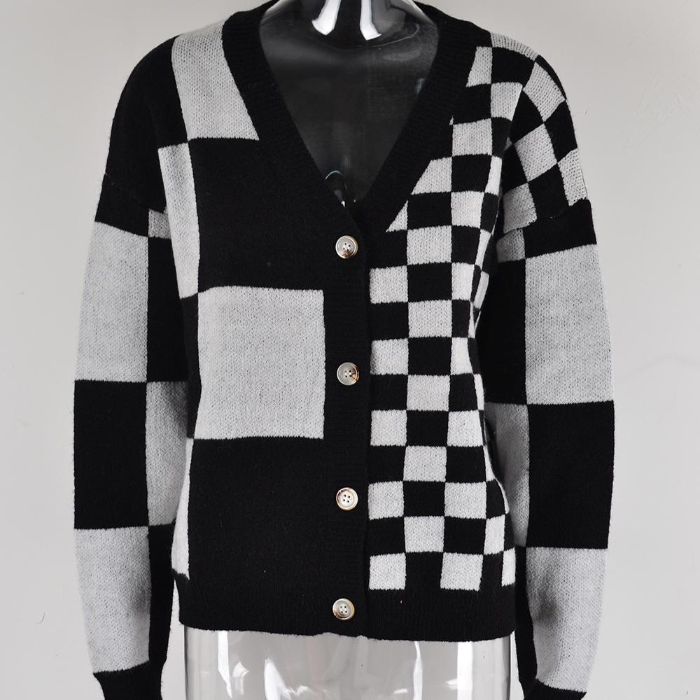 Осенне-зимний женский трикотаж в клетку, вязаный кардиган большого размера