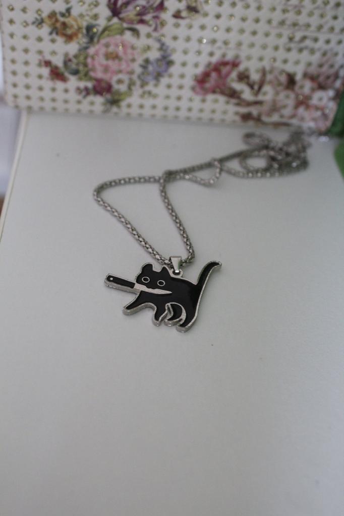Цепочка с кошечкой 🐈✨ Цепочка на шею с кулоном в виде кошечки держащей нож в зубках 🌚 Необычное украшение, подойдёт, на мой взгляд, для милых девушек, но с дерзким характером ) Кулончик достаточно крупный, я бы предпочла поменьше. Но выглядит прикольно 🙂 Длина цепочки около 45 см.