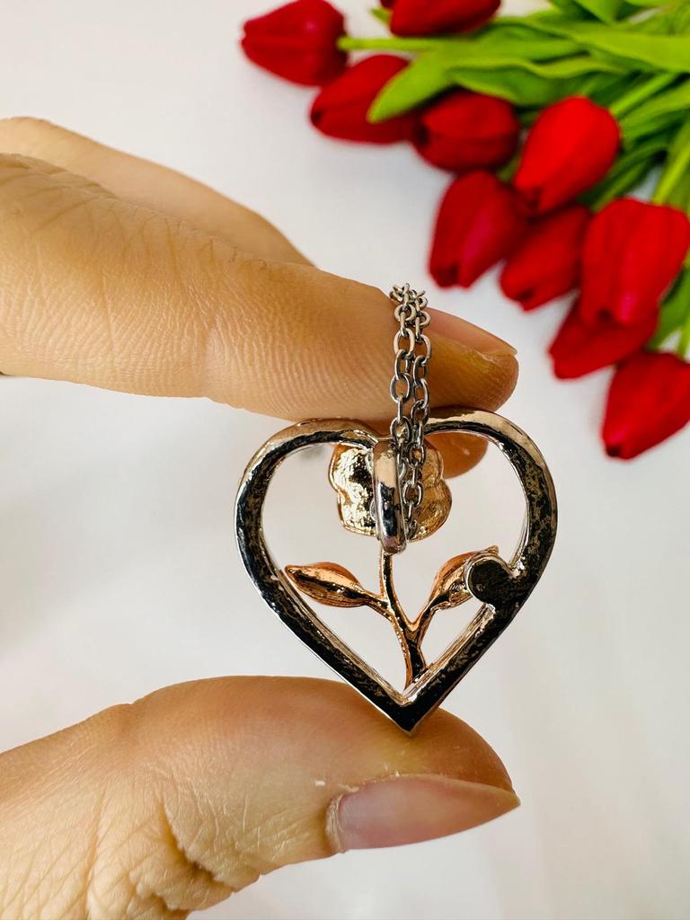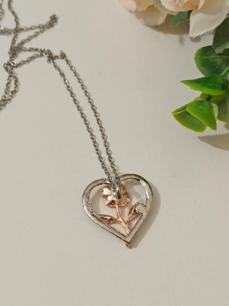 Подвеска в виде сердца с цепочкой. Подвески «сердце» – символ нежности, любви и верности. Кулоны «сердце» всегда были и остаются, пожалуй, одним из наиболее популярных видов подвесов. Они поражают многообразием вариантов декора и безграничностью дизайнерской фантазии. Смотрится такое украшение очень, очень красиво. В средине сердца красивая роза. Подвеска украшена камушками циркония, красиво переливается на солнце. Камушки закреплены надёжно. Материал изготовления сплав, поэтому послужит долгое время. Длина цепочки минимальная 44 см максимальная 48 см. длина подвески 2 см. Кто любит бижутерия советую присмотреться , да и цена копейки за такое украшение. К покупке однозначно рекомендую 👍