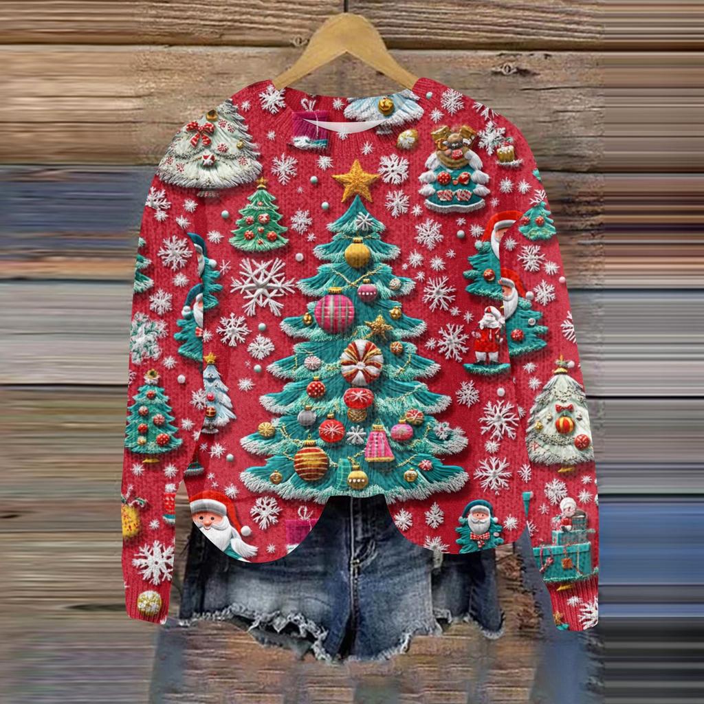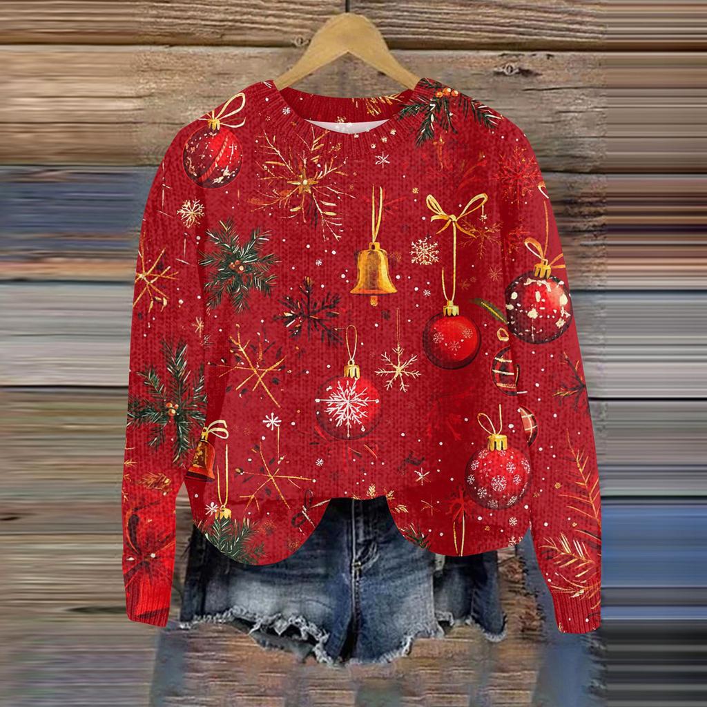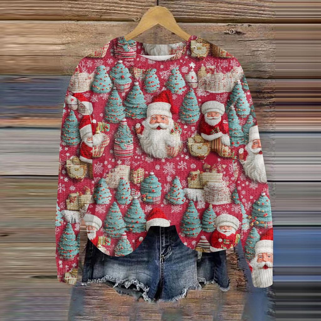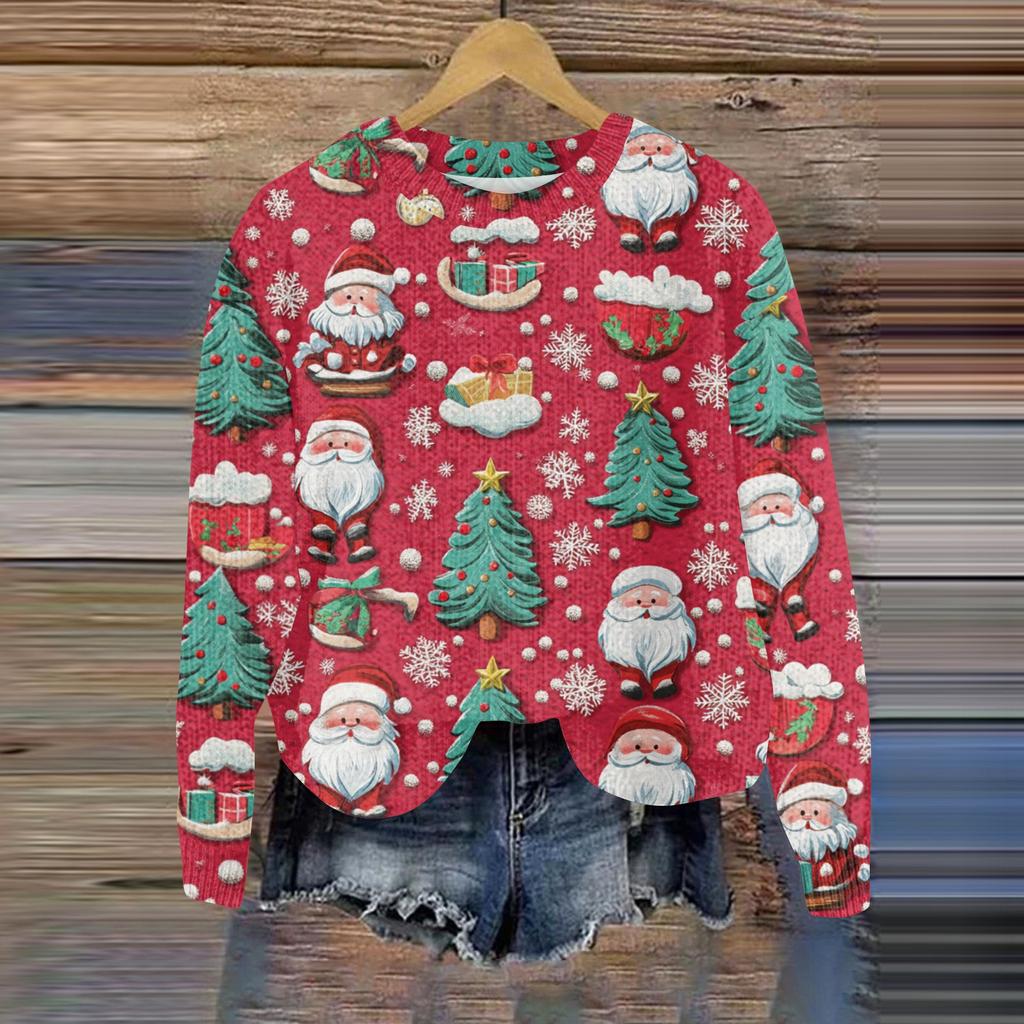 Рождественские толстовки для женщин Вязаный свитер Милая рубашка Осенний свитер с круглым вырезом Топы