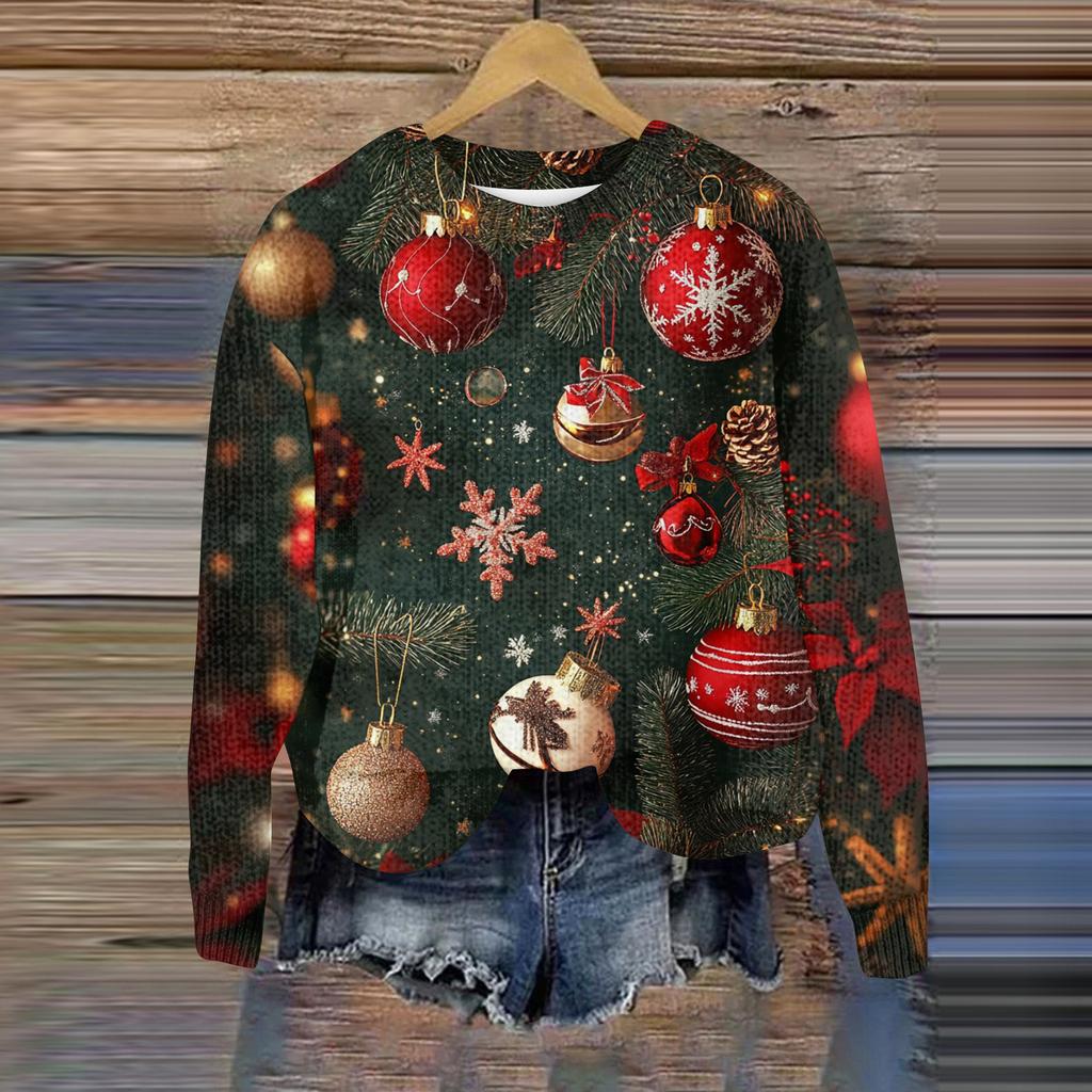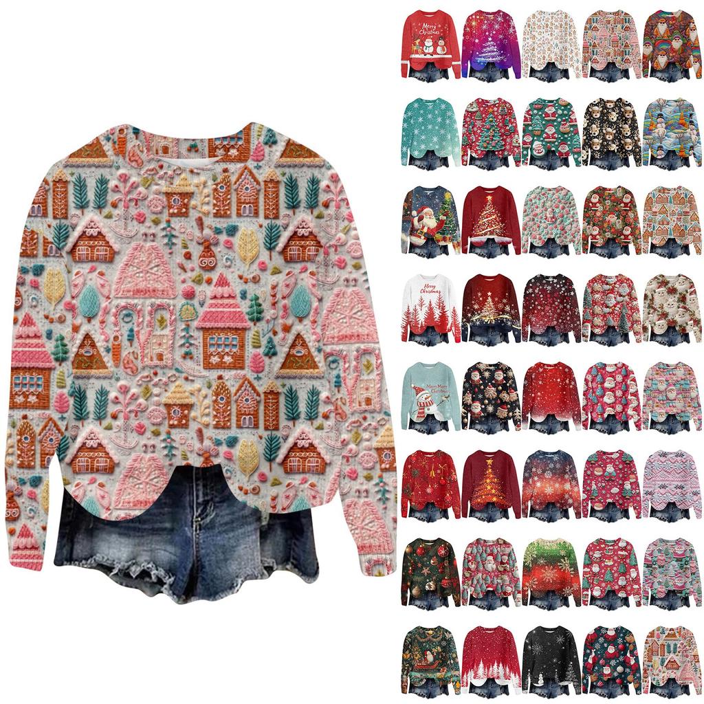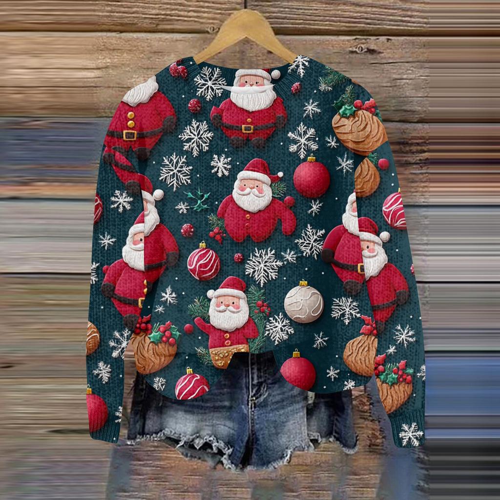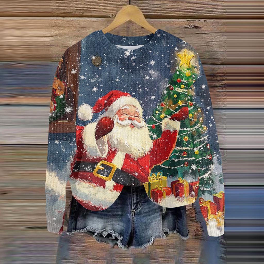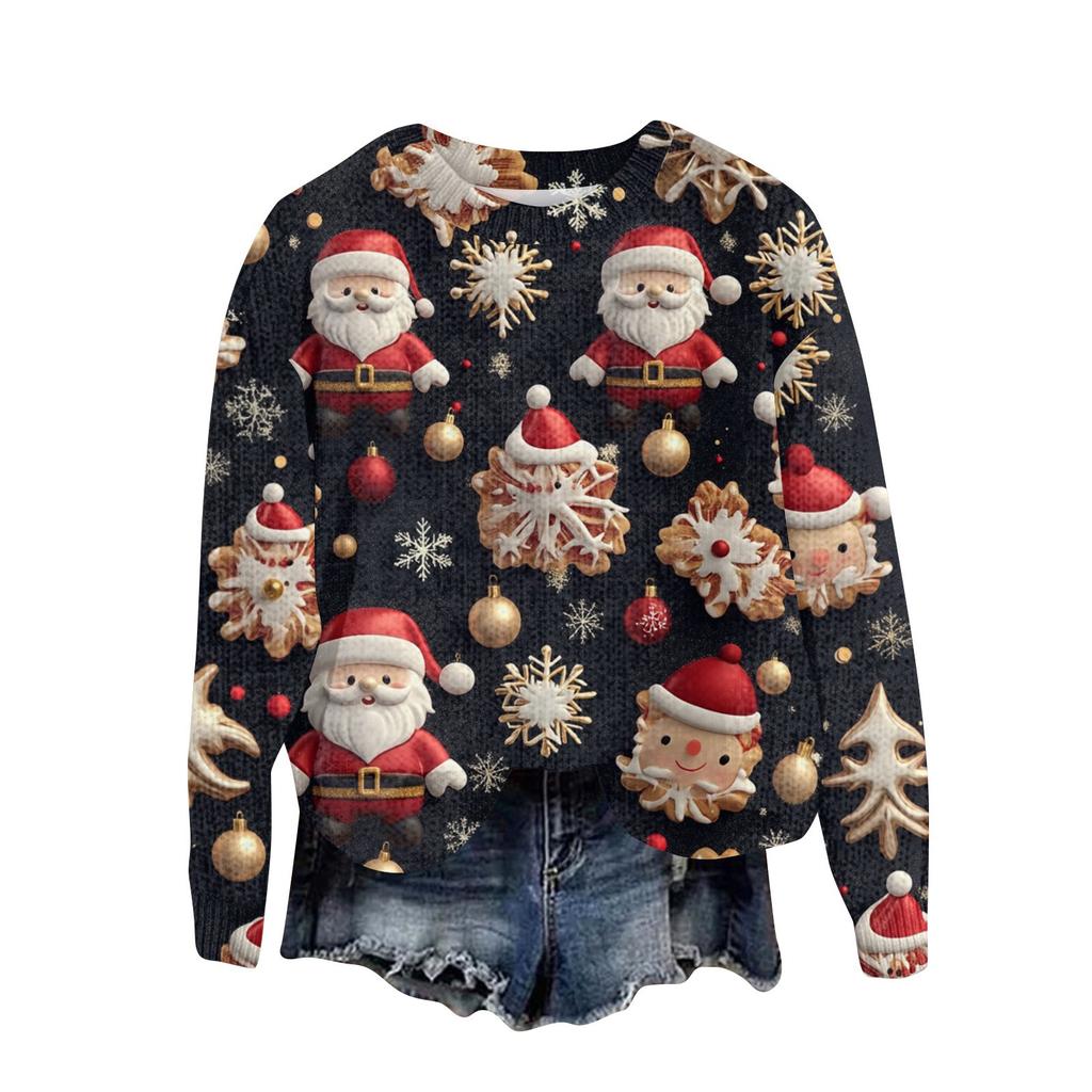 Рождественские толстовки для женщин Вязаный свитер Милая рубашка Осенний свитер с круглым вырезом Топы