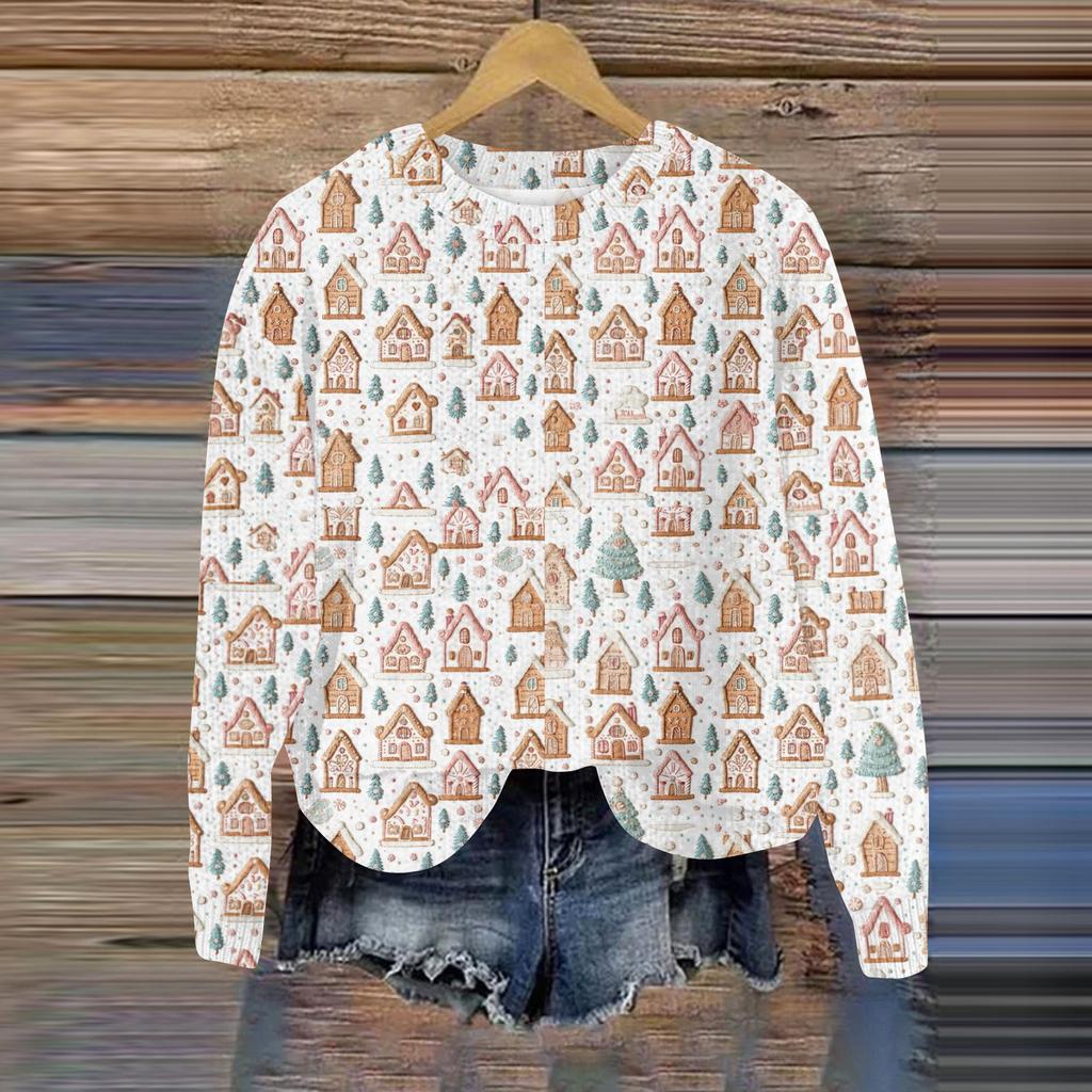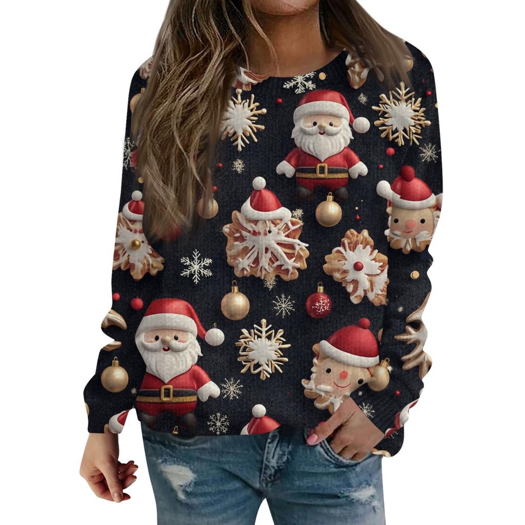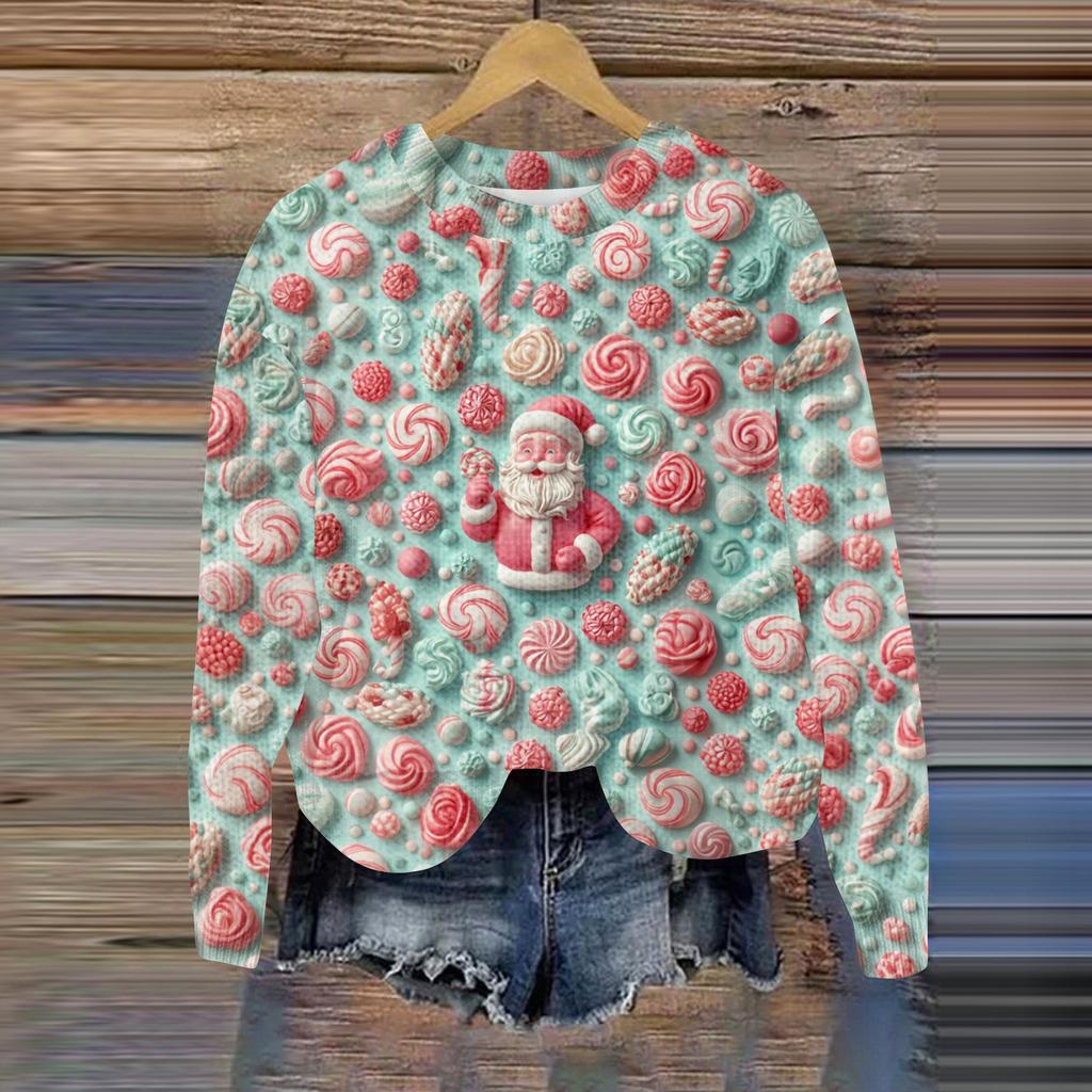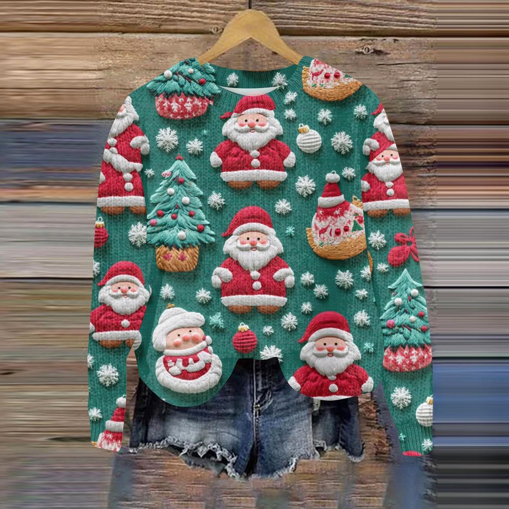 Рождественские толстовки для женщин Вязаный свитер Милая рубашка Осенний свитер с круглым вырезом Топы